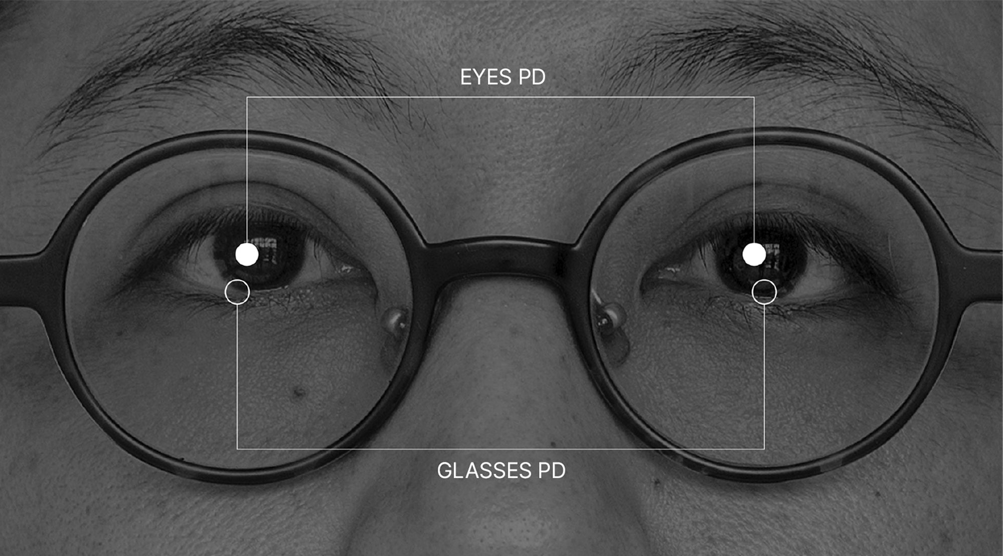 (Glasses PD value = Lens width length + bridge length) - Eye PD value =