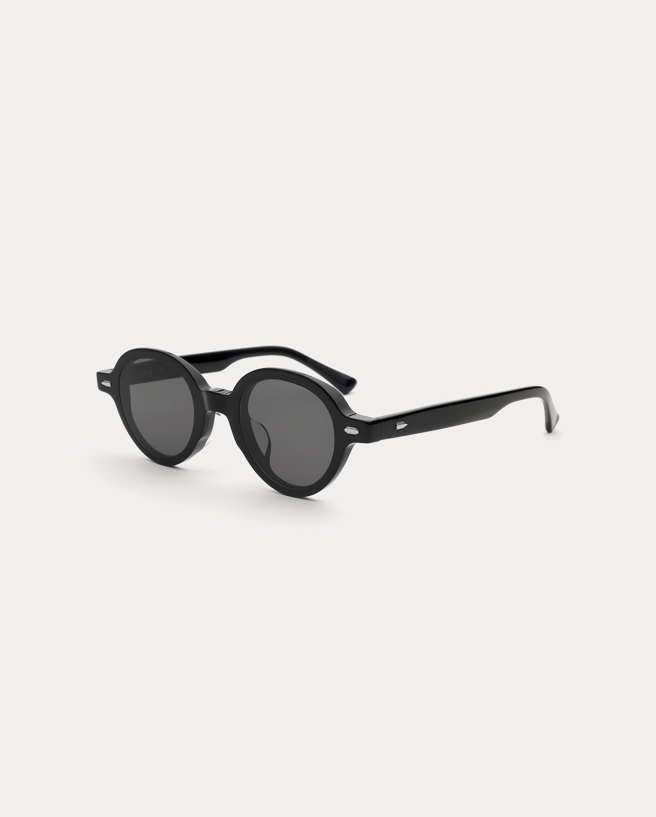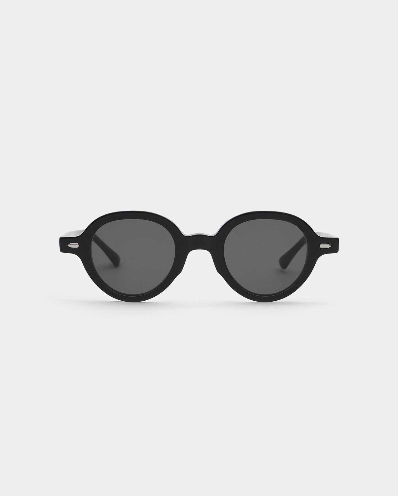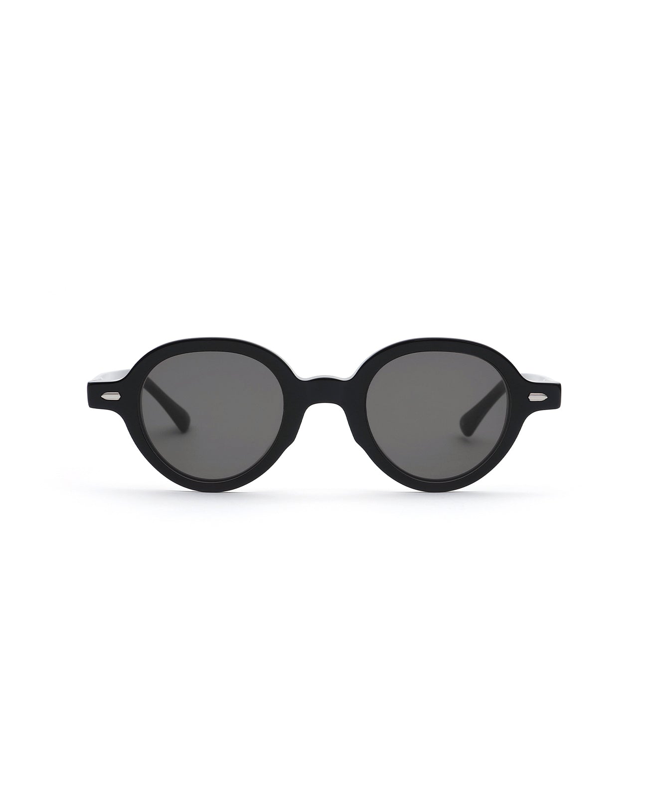 Round acetate Sunglass frame. The lens size is relatively smaller than general sunglasses, but the bridge and endpiece are long, making it easy to wear, and creating a classic mood. In addition, the front is made flat between the lens and the frame, showing a differentiated appearance.