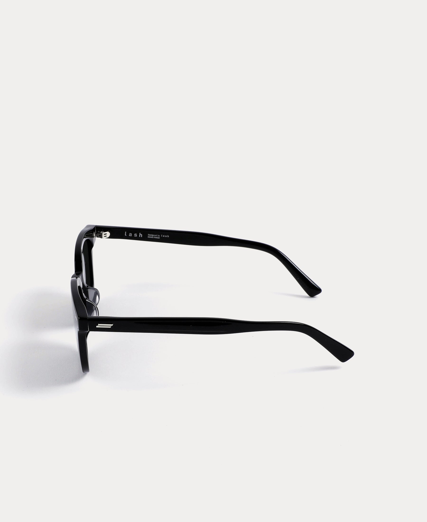 Square acetate sunglass frame. The silhouette is flat with seamless between the lenses and the front rim for a chic look when worn. The combined metal embellishments on the front and temples make them stand out