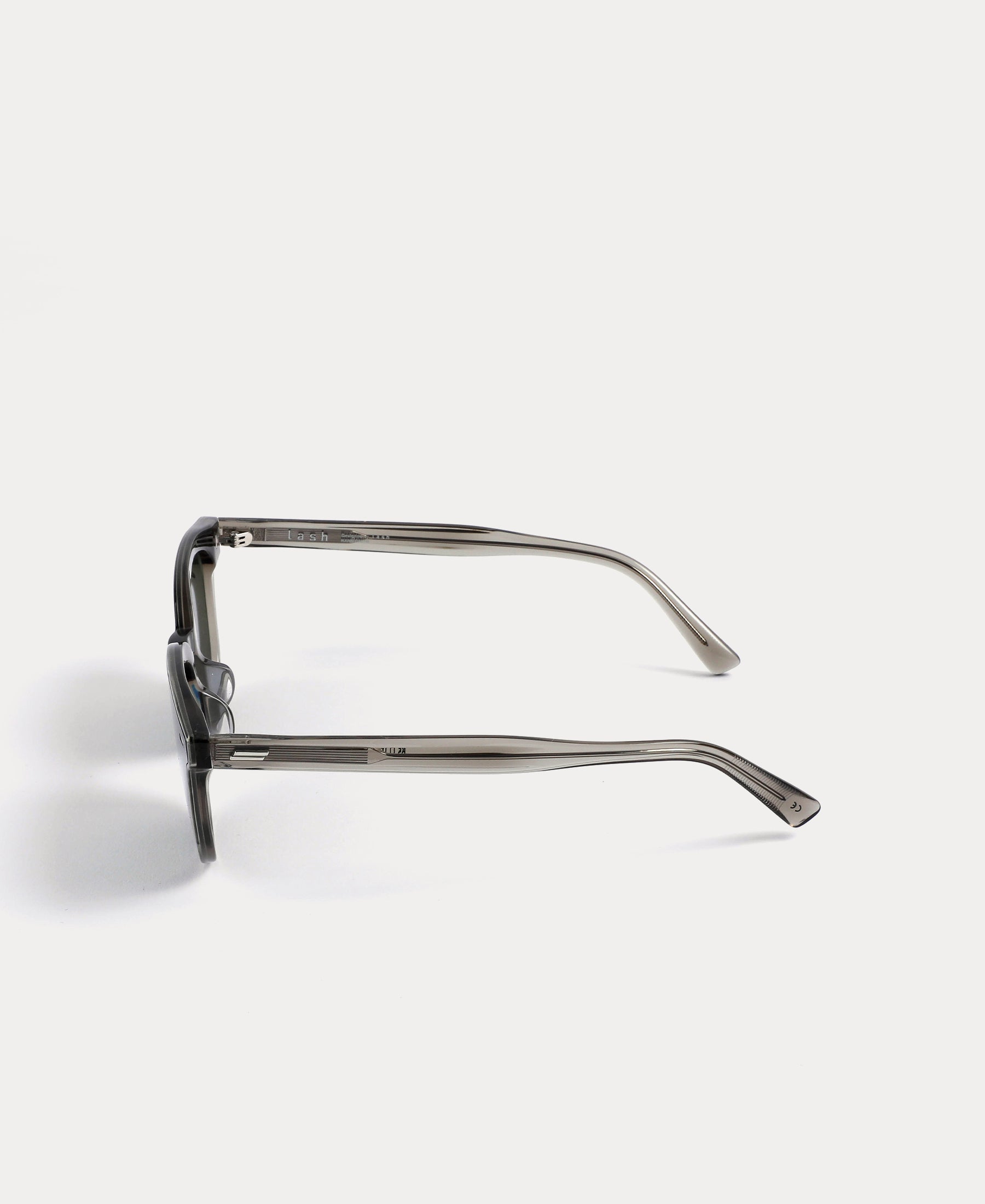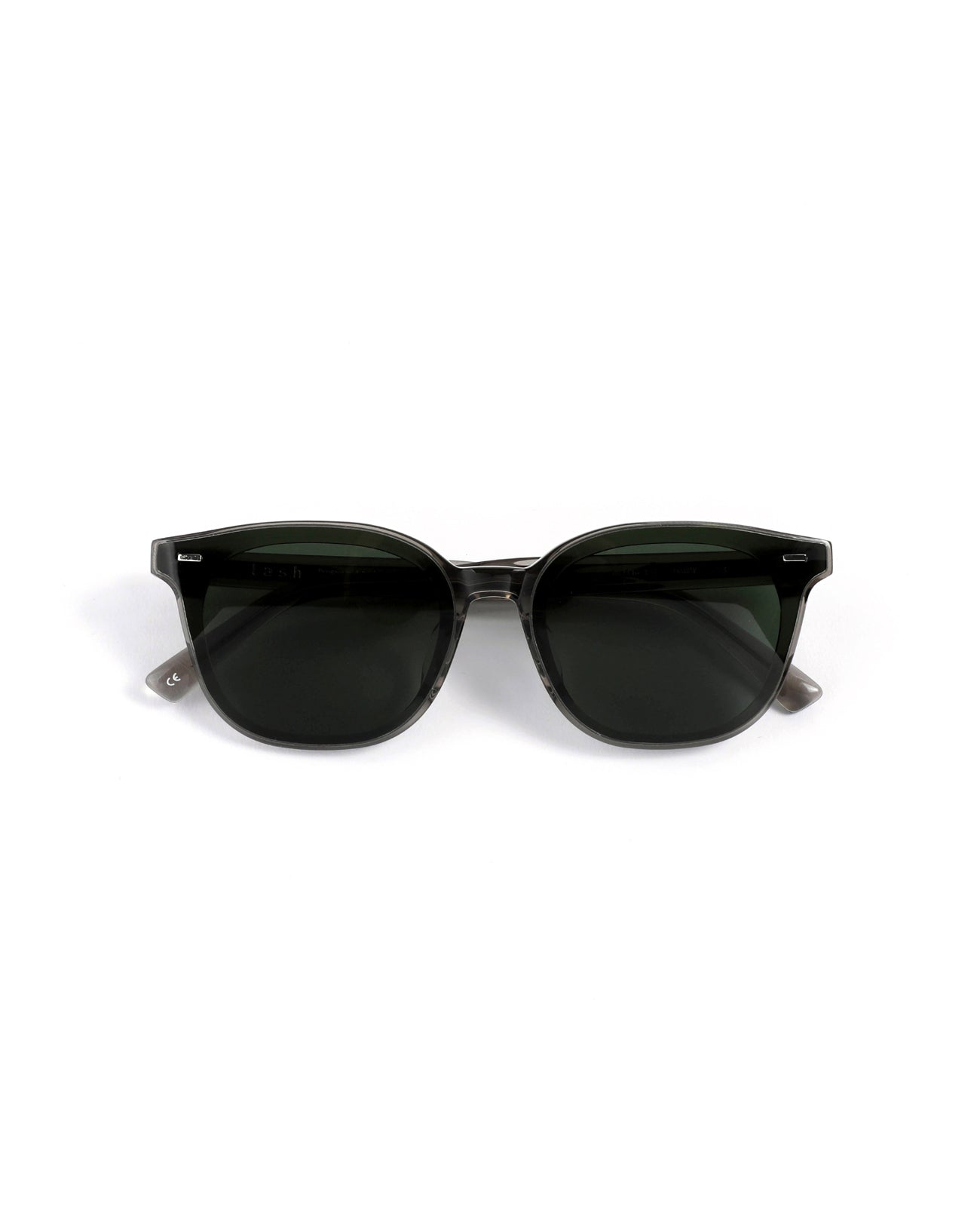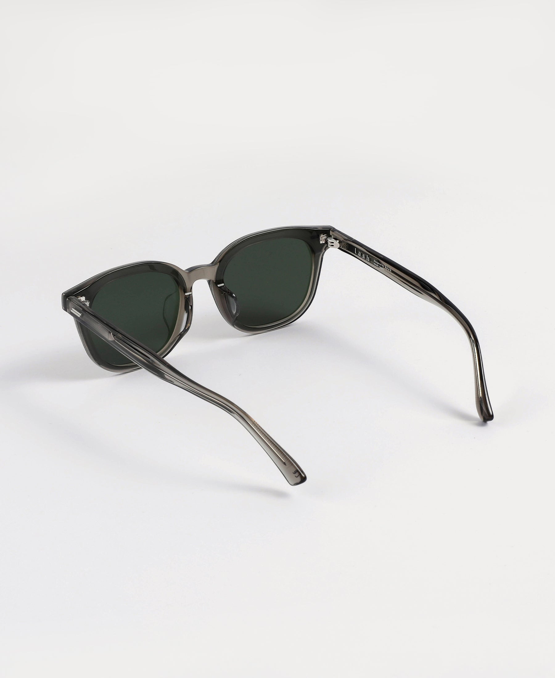 Square acetate sunglass frame. The silhouette is flat with seamless between the lenses and the front rim for a chic look when worn. The combined metal embellishments on the front and temples make them stand out