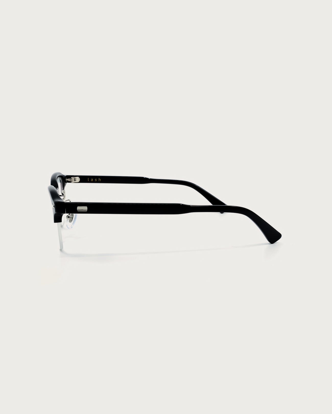 Wellington acetate optical frame. it features unique design details by combining a metal bridge on the back of the half-frame front. The transparent bridge design is intended to show the connecting structure of the nose pads