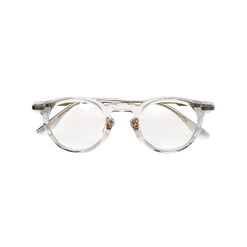 Round acetate and titanium combination optical frame. It features a heavy keyhole bridge and the details applied on temples and end-piece of the front part. The frame provides a comfortable fitting by attaching the nose pad.
