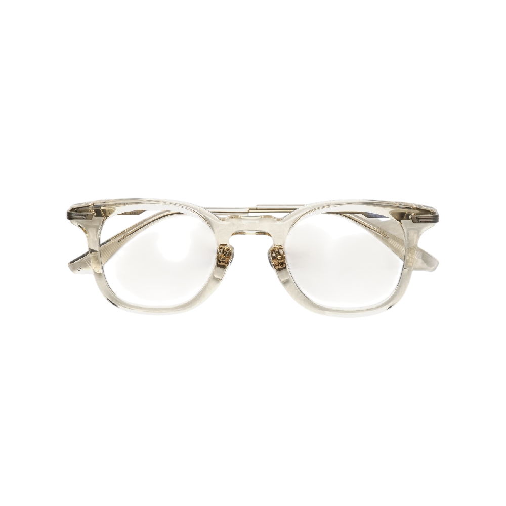 Square acetate and titanium combination optical frame. It features a heavy keyhole bridge and the details applied on temples and end-piece of the front part. The frame provides a comfortable fitting by attaching the nose pad. The straight end piece and the gently falling bottom line are harmonized, and create a unique silhouette.