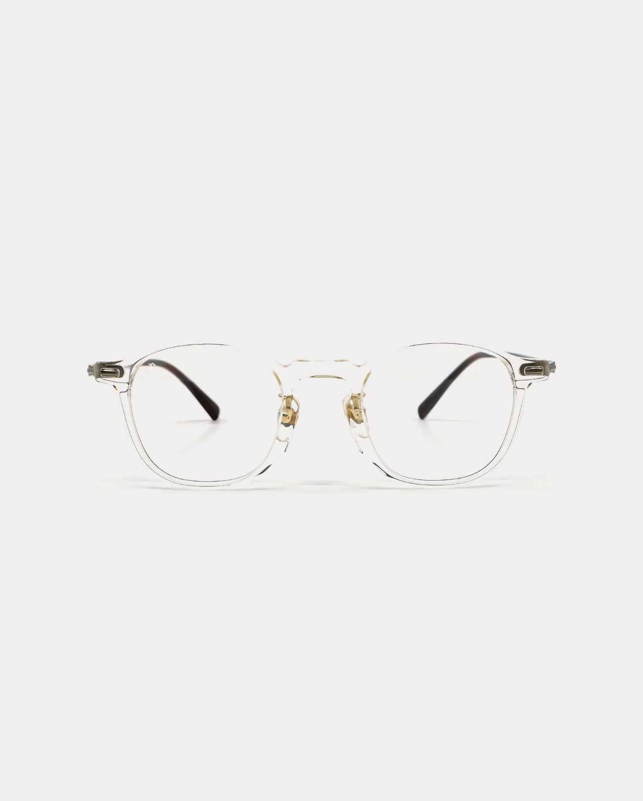Square acetate optical frame. The refined edition is made with the minimum thickness of acetate (4mm), which gives a light and comfortable fit. It shows a natural silhouette with Refined Edition's unique endpiece design that falls softly and flexibly from the end of the frame. Its stable French Square shape is perfect for daily wearing.