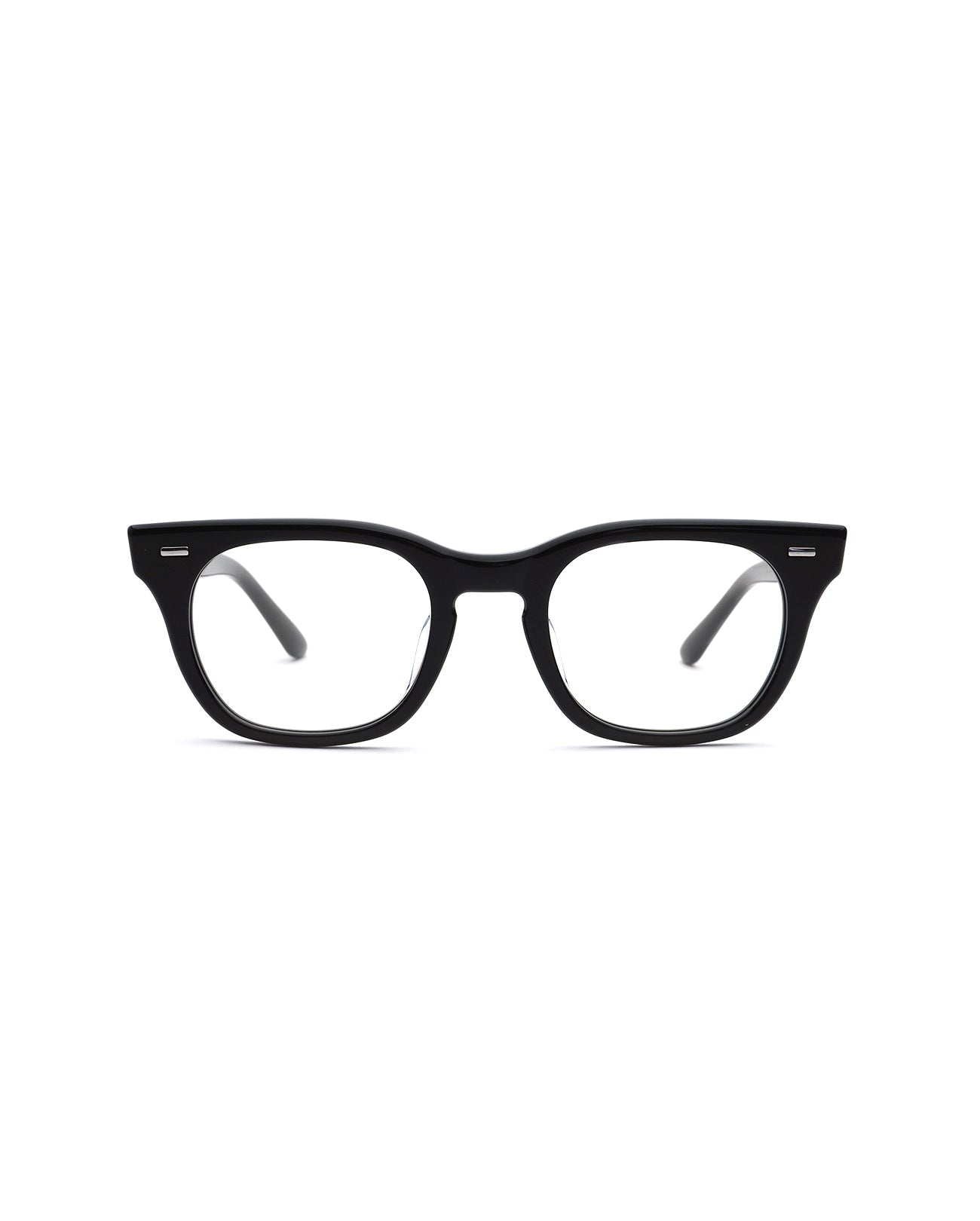 Square acetate optical frame.It is characterized by a stable balance and smooth endpieces and bridges, while a simple riveting and shape allow for everyday wear.The design of the frame is originated by U.S military eyewear.