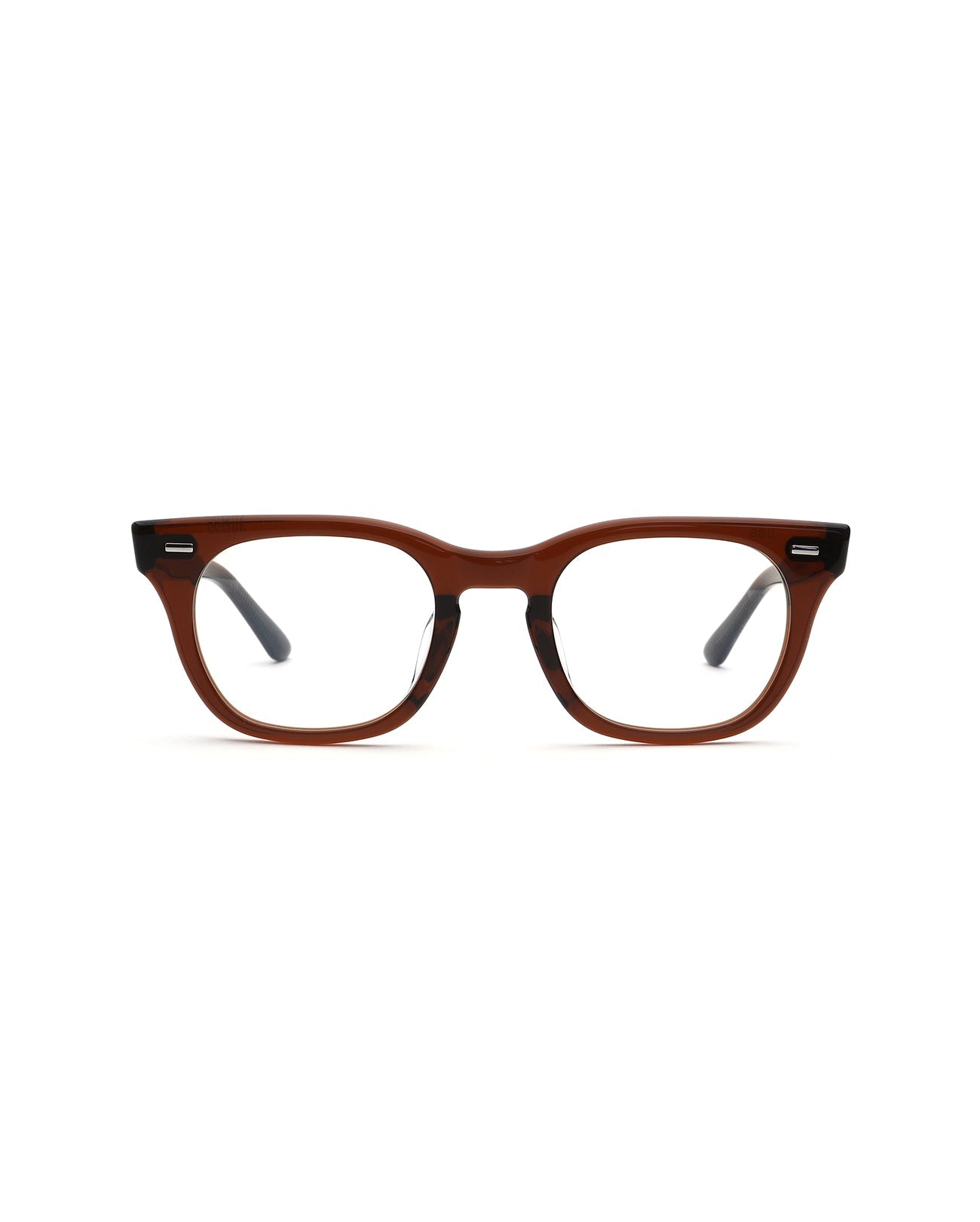 Square acetate optical frame.It is characterized by a stable balance and smooth endpieces and bridges, while a simple riveting and shape allow for everyday wear.The design of the frame is originated by U.S military eyewear.