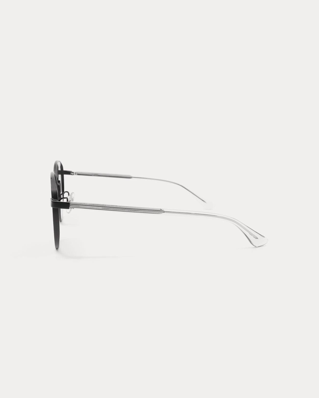 Round metal sunglass frame. The four lines of engraving details are applied on the rims and temples as lash’s signature. It is perfect to wear daily with its well balanced shape.