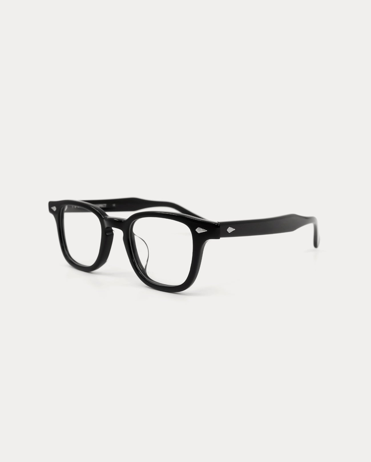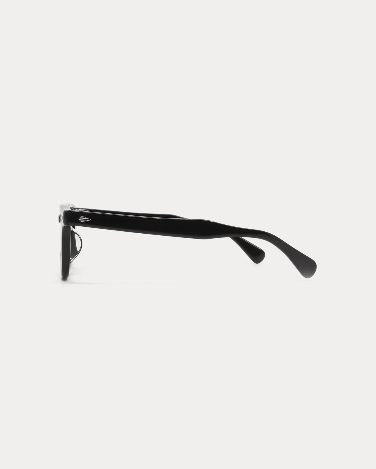 It is an American Boston shape with engraved details on the front of the eyeball and rivets in the temple to add design elements.