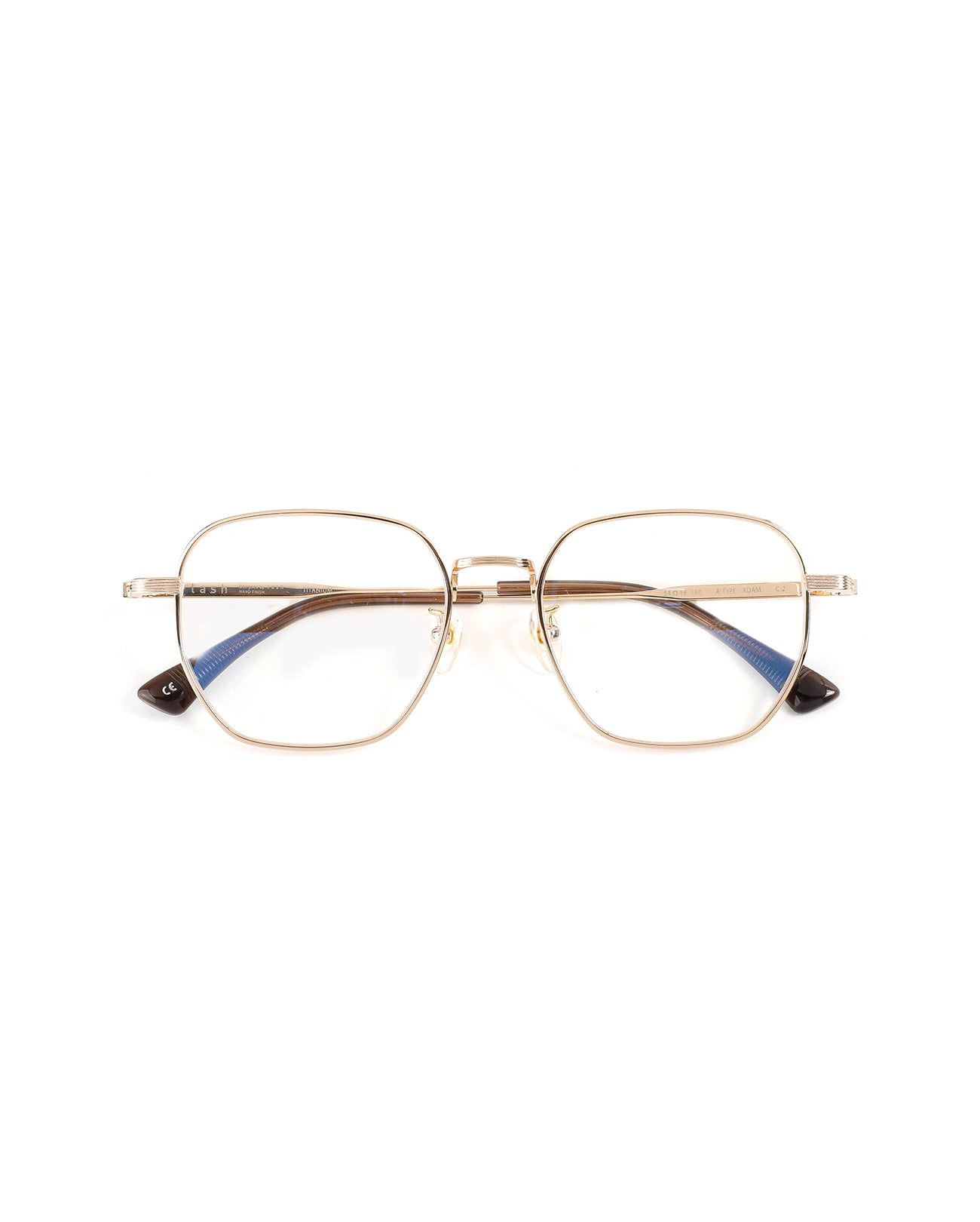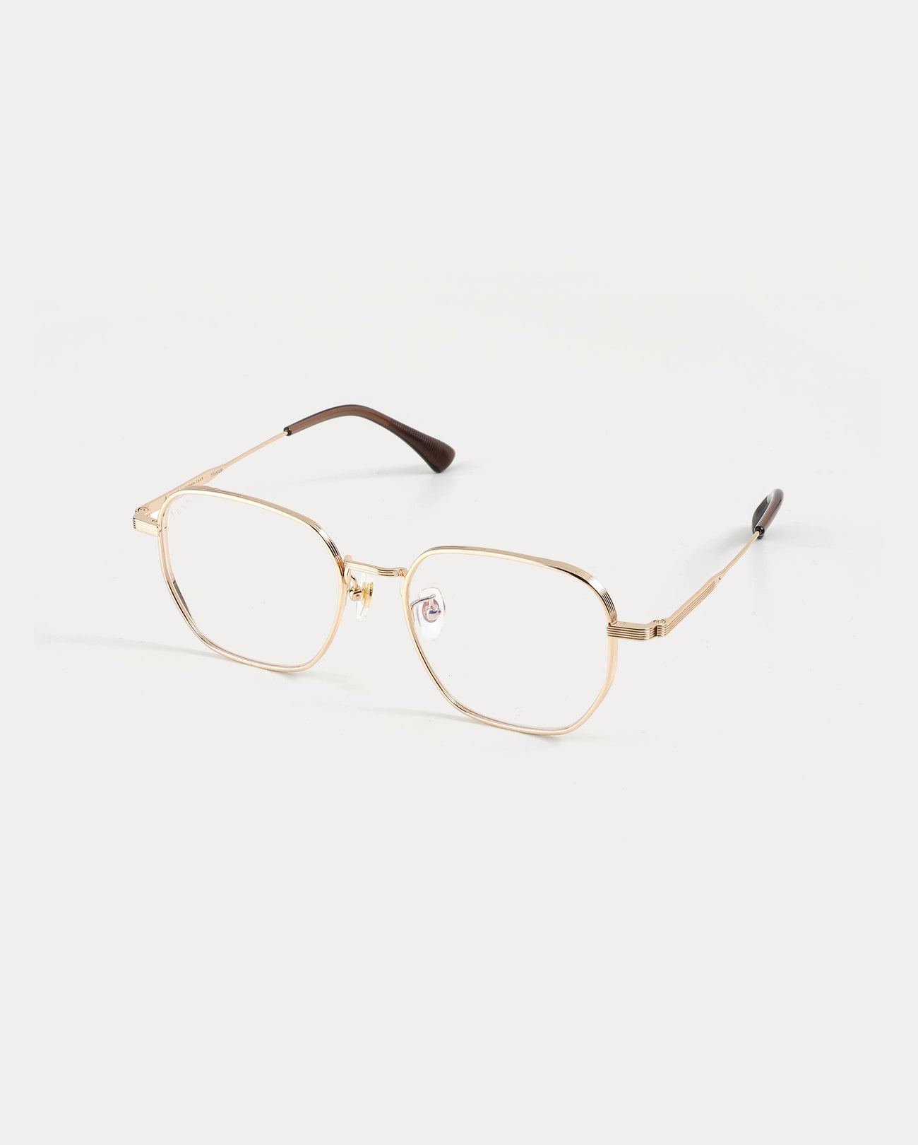 Polygonal titanium optical frame. The design details in the bridge, rims, end piece, and temples create a sophisticated look. over-sized rims and design create a vintage look.