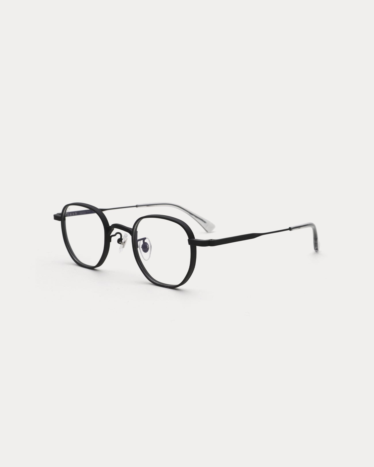 Square metal optical frame. The front and temples are made of titanium. It features thin lines and lightness, comfortable fitting, and excellent durability.