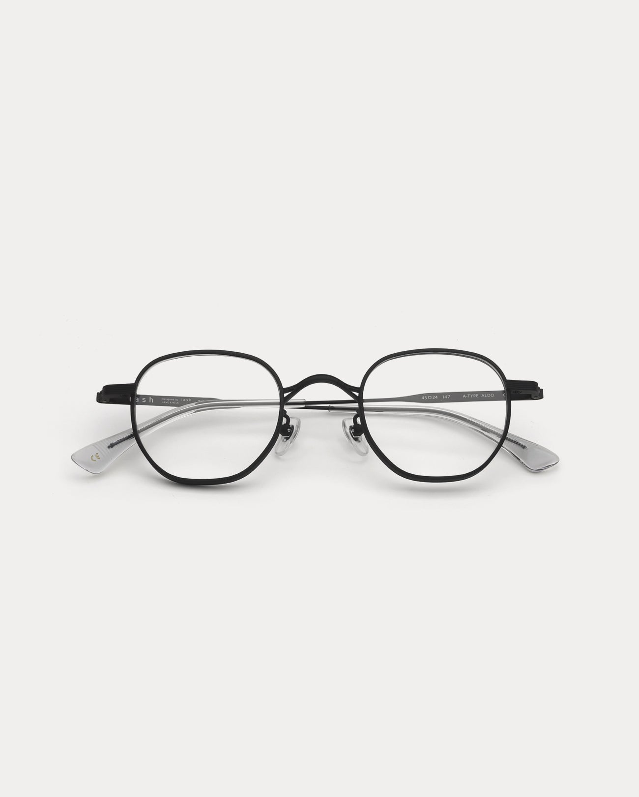Square metal optical frame. The front and temples are made of titanium. It features thin lines and lightness, comfortable fitting, and excellent durability.