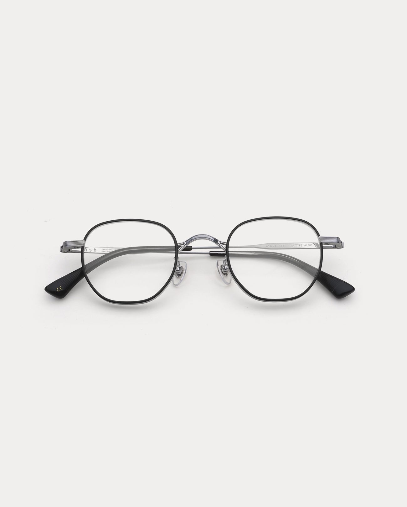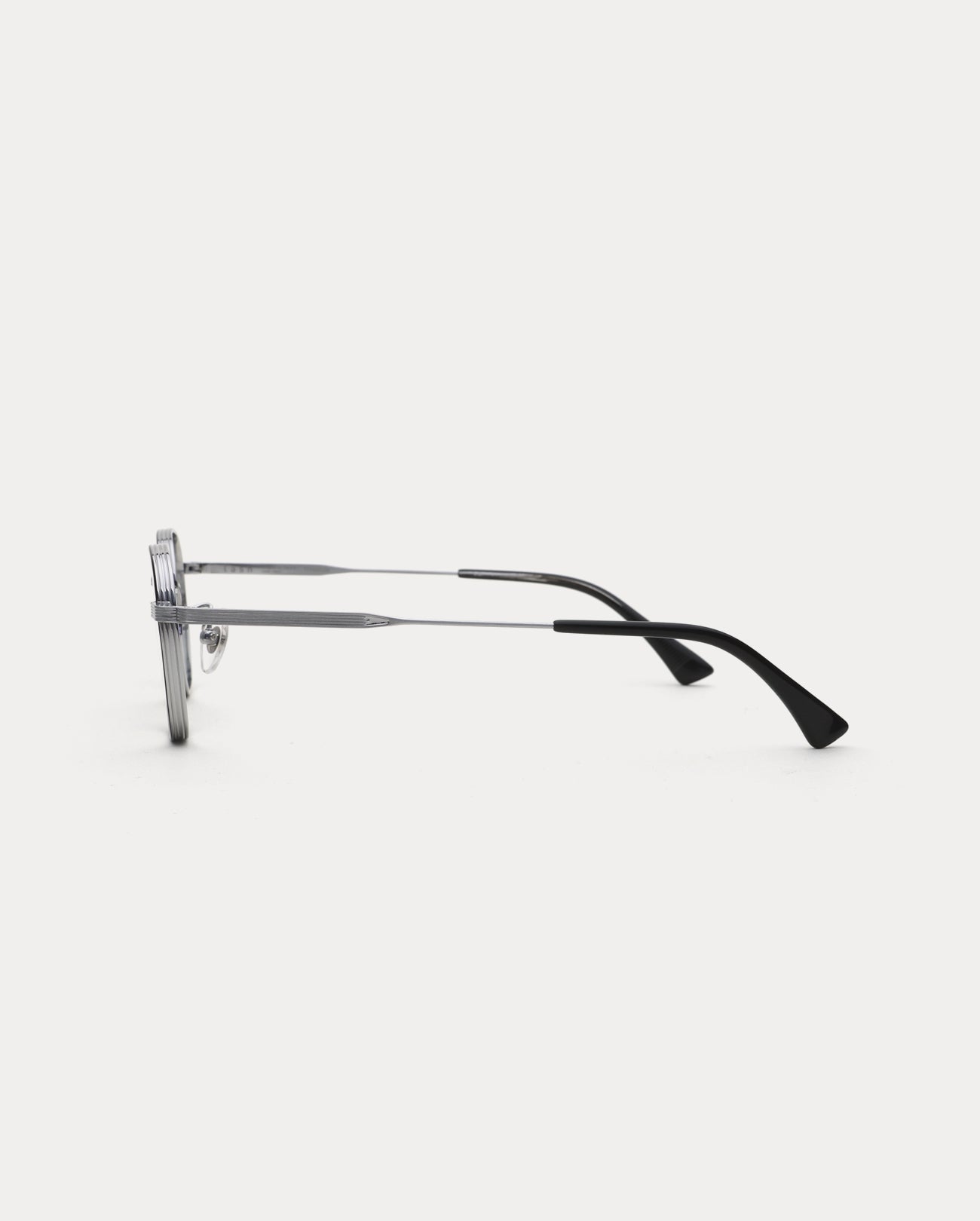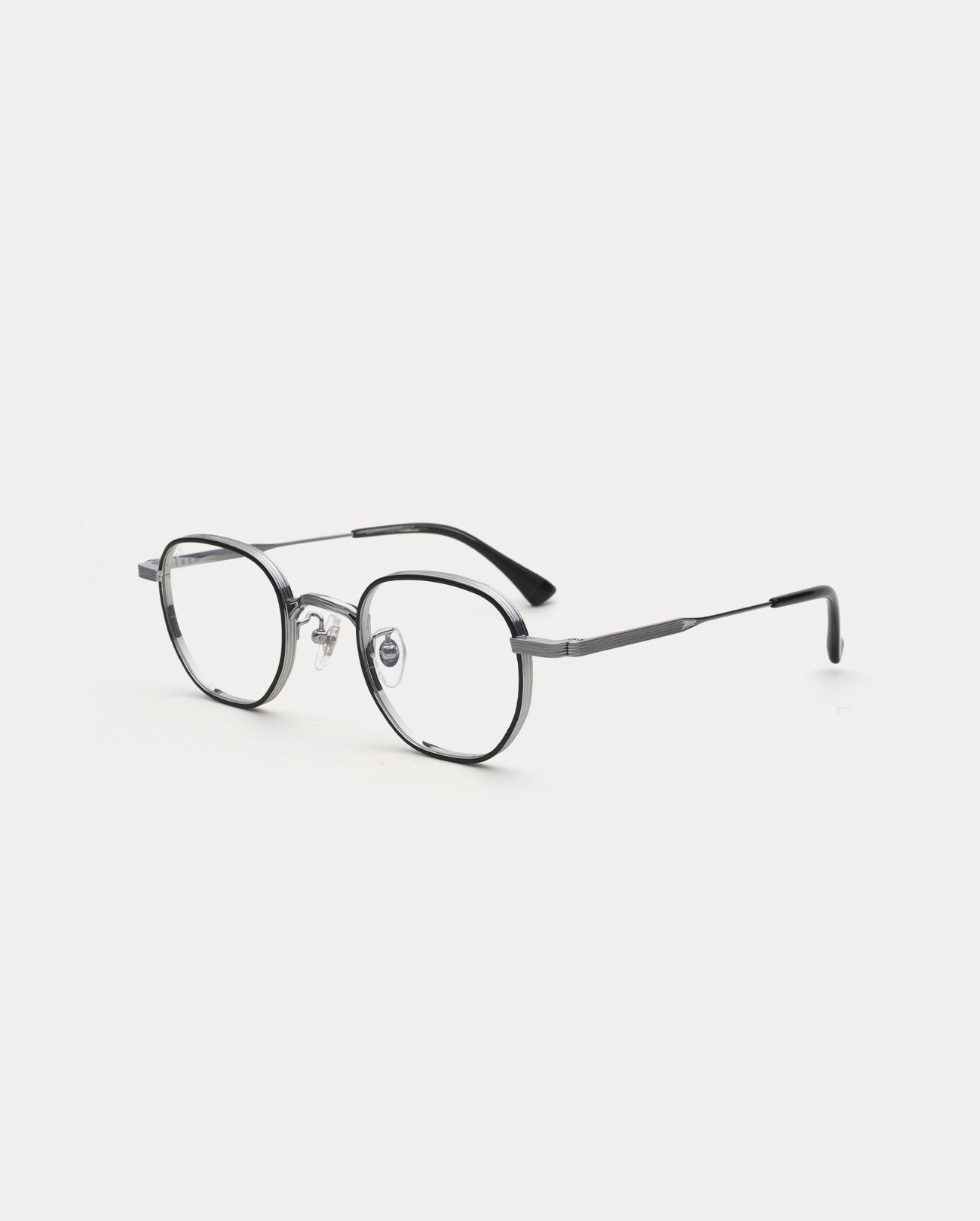 Square metal optical frame. The front and temples are made of titanium. It features thin lines and lightness, comfortable fitting, and excellent durability.