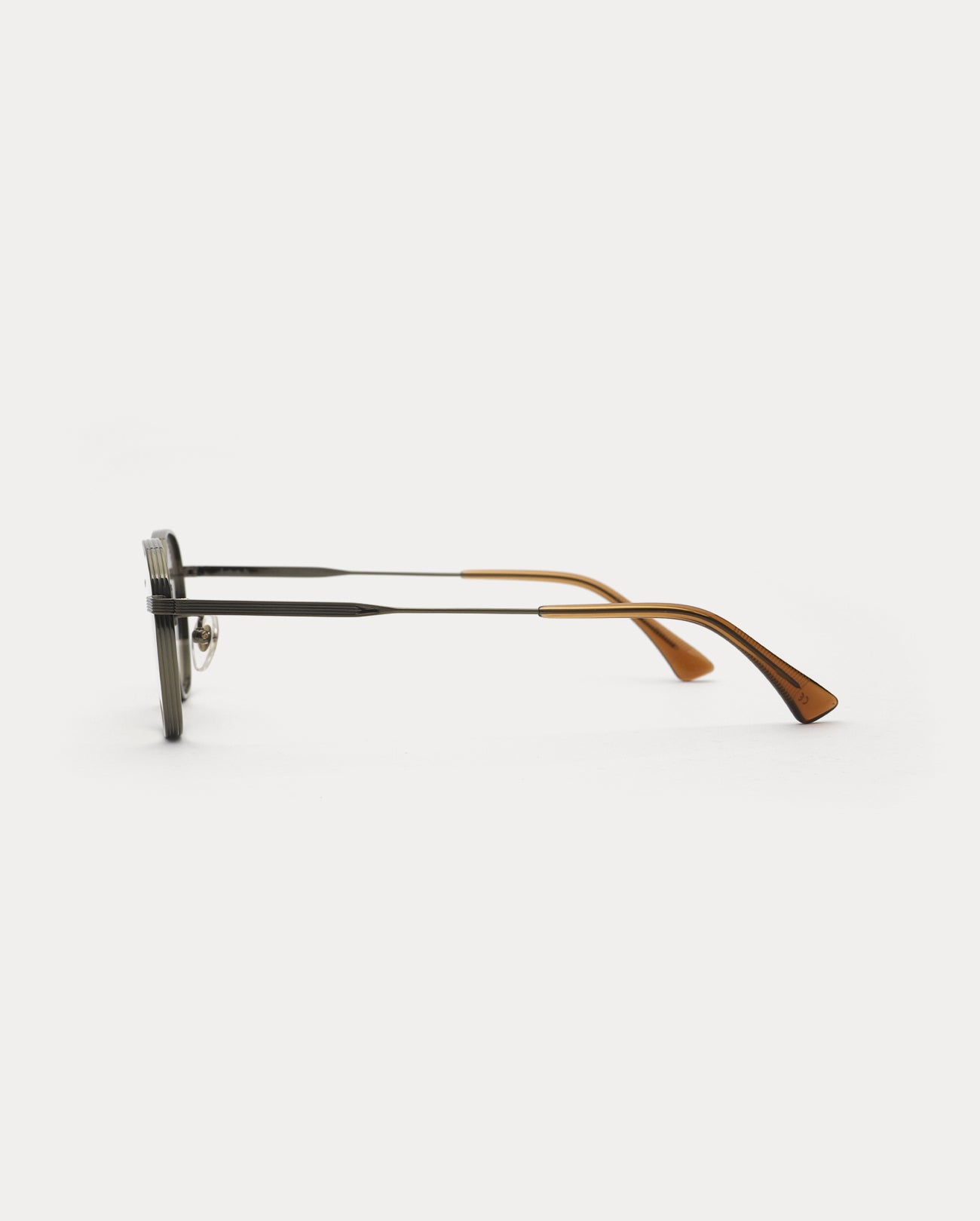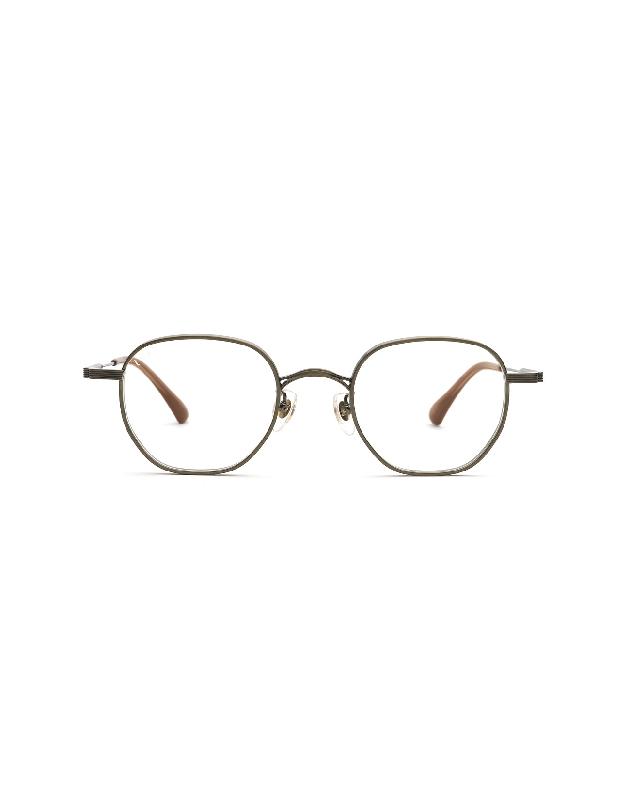 Square metal optical frame. The front and temples are made of titanium. It features thin lines and lightness, comfortable fitting, and excellent durability.