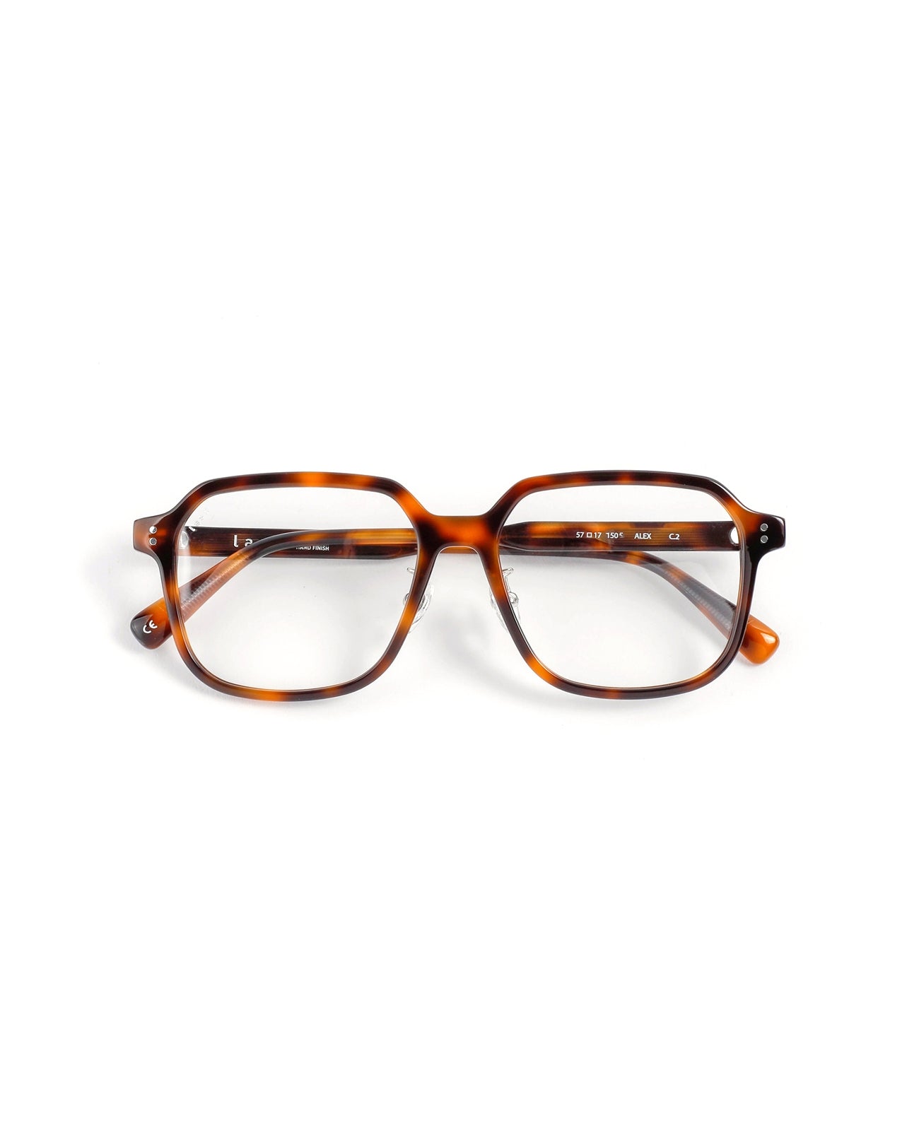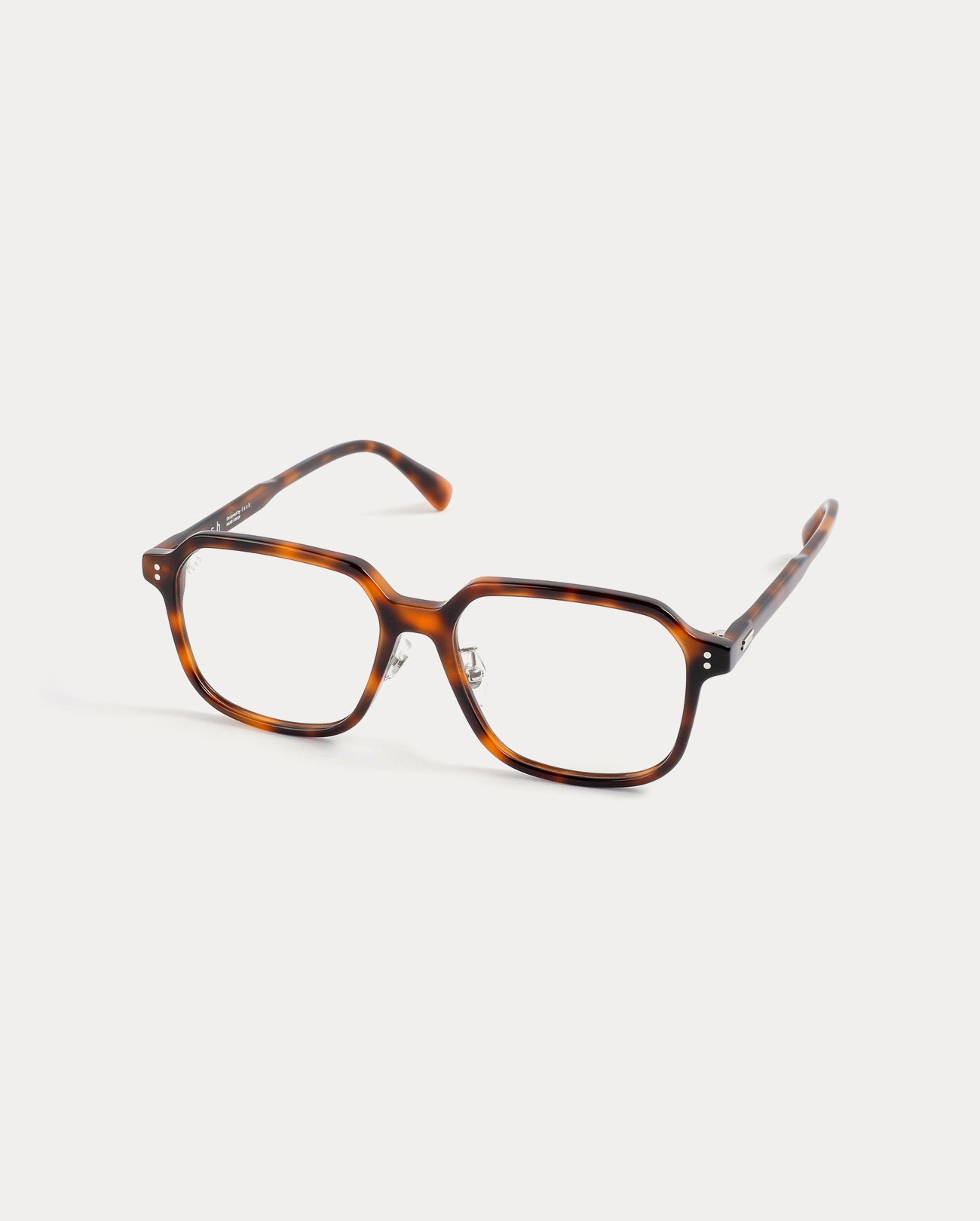 Square acetate optical frame. The oversized, retro shape creates a unique look. The overall thin silhouette is accented with metallic details on the front and temples.