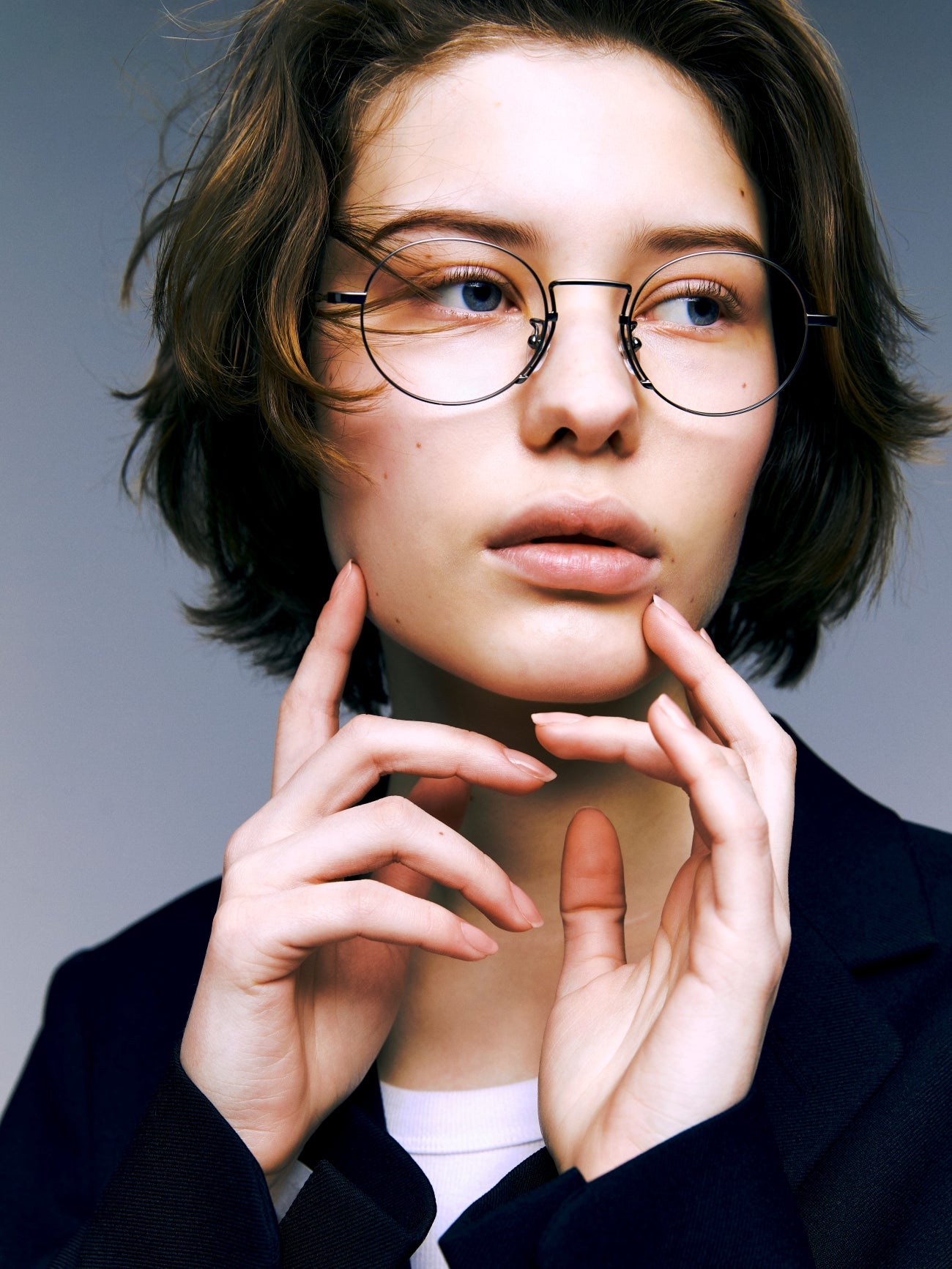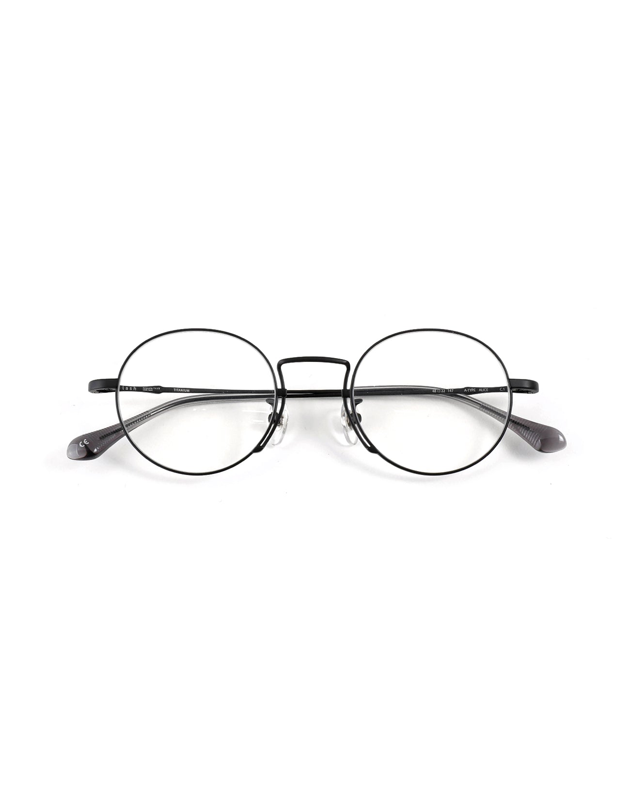 Round titanium optical frame. The front and temples are made of titanium. It features thin lines and lightness, comfortable fitting, and excellent durability. The uniquely structured bridge creates a sleek silhouette.