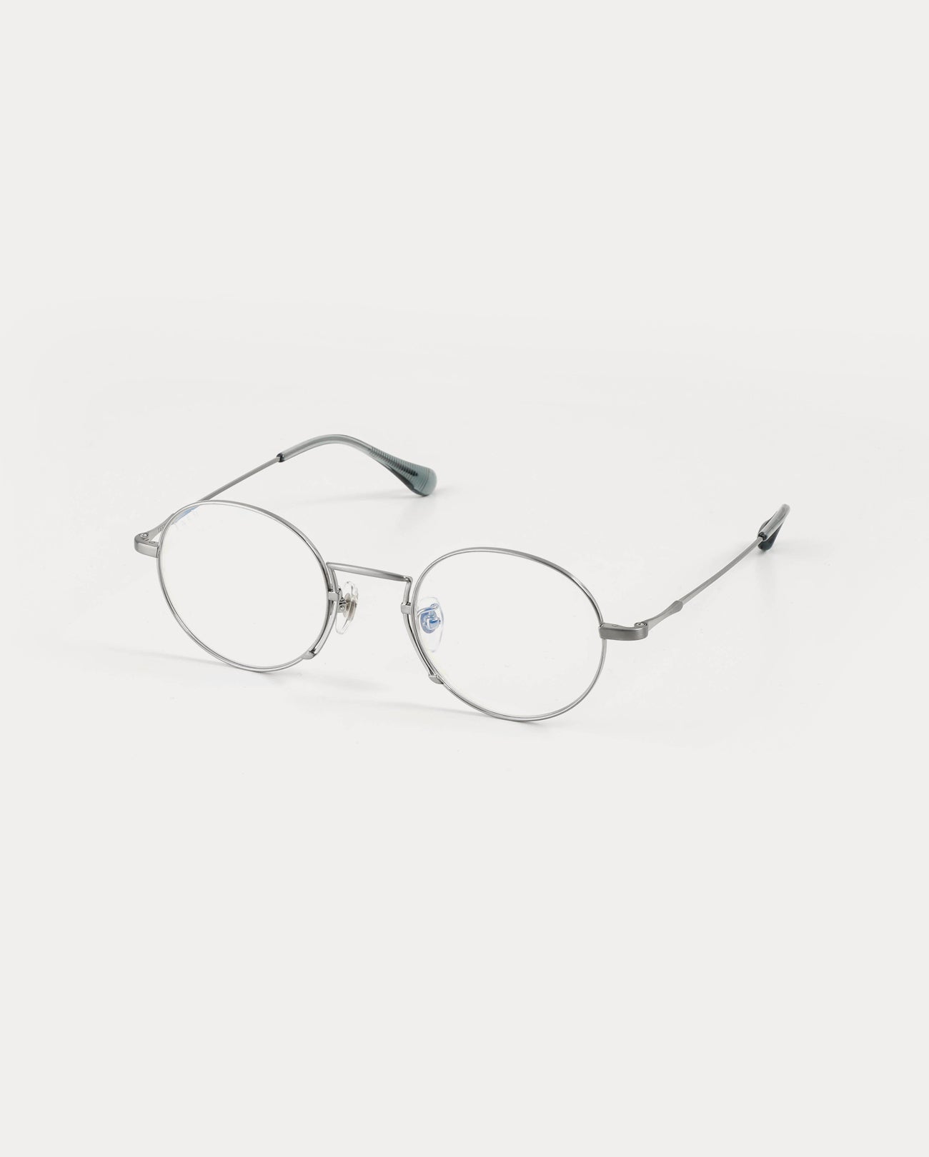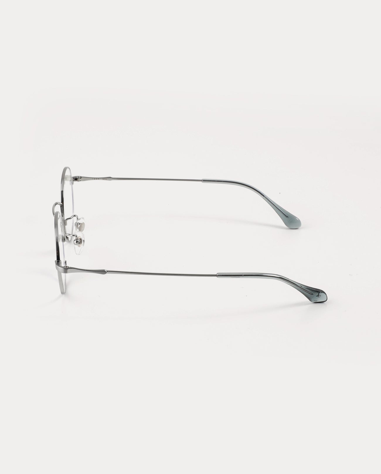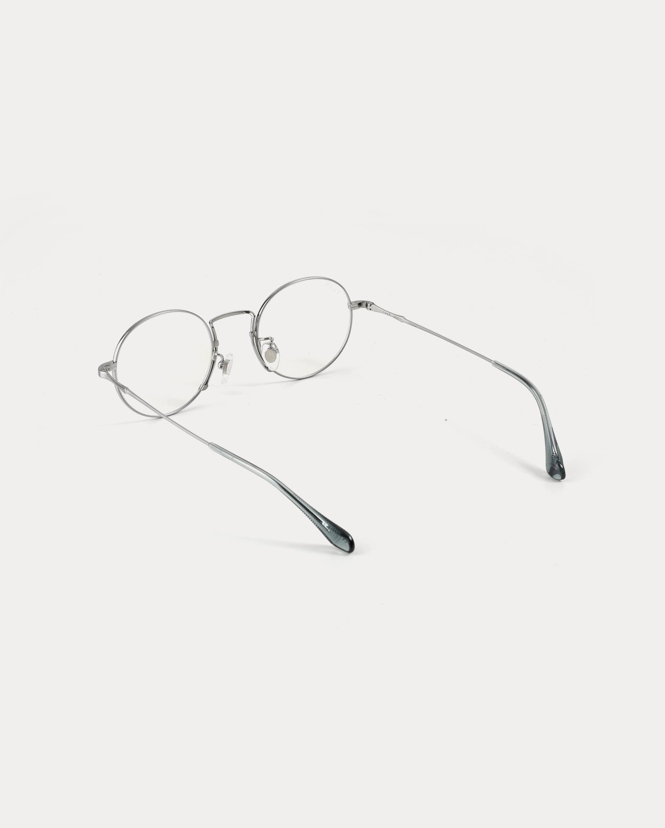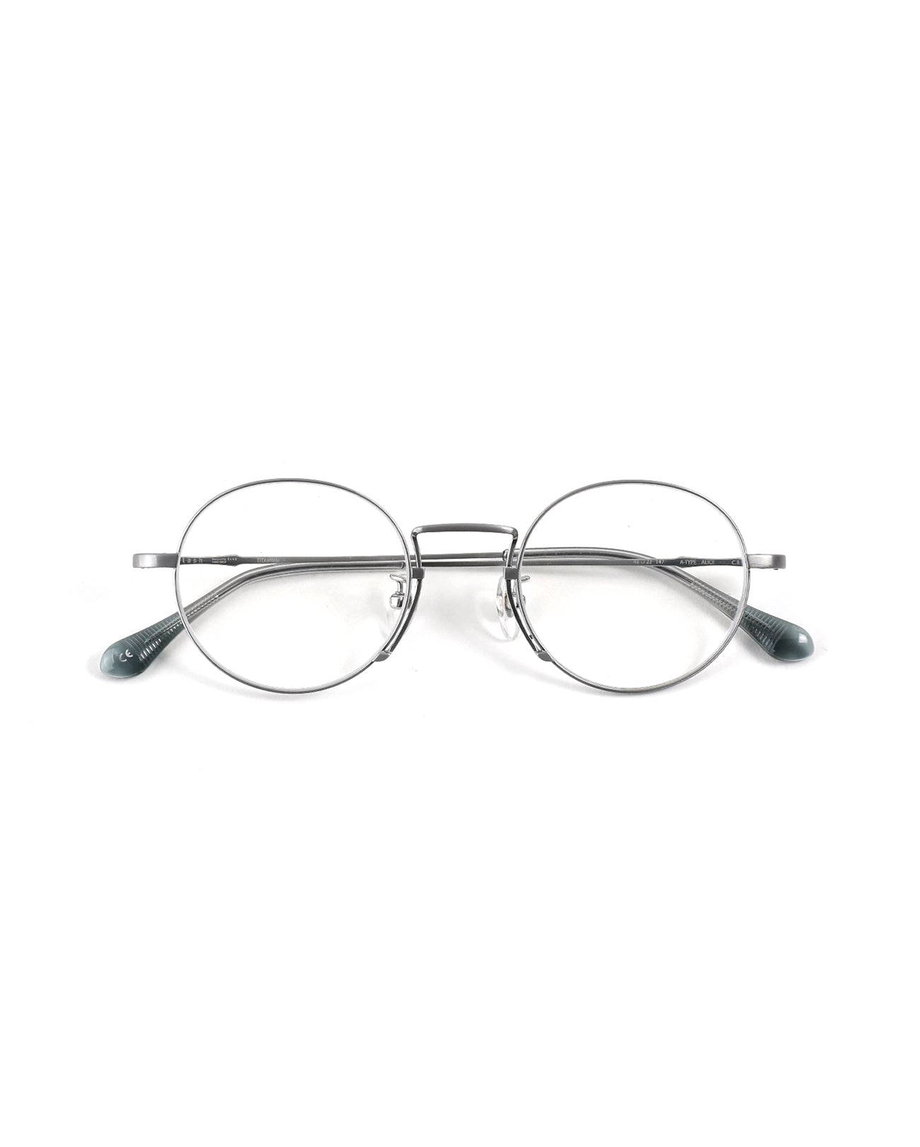 Round titanium optical frame. The front and temples are made of titanium. It features thin lines and lightness, comfortable fitting, and excellent durability. The uniquely structured bridge creates a sleek silhouette.