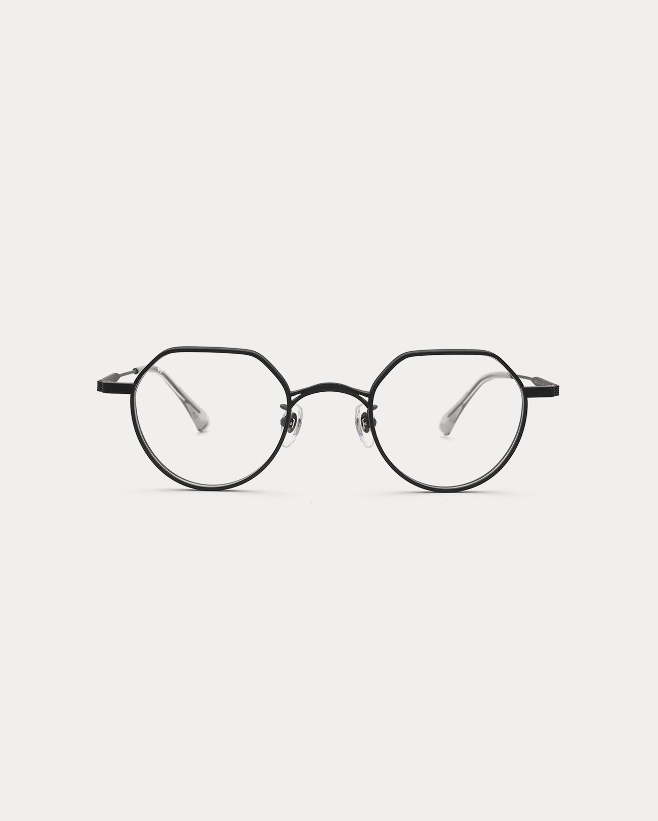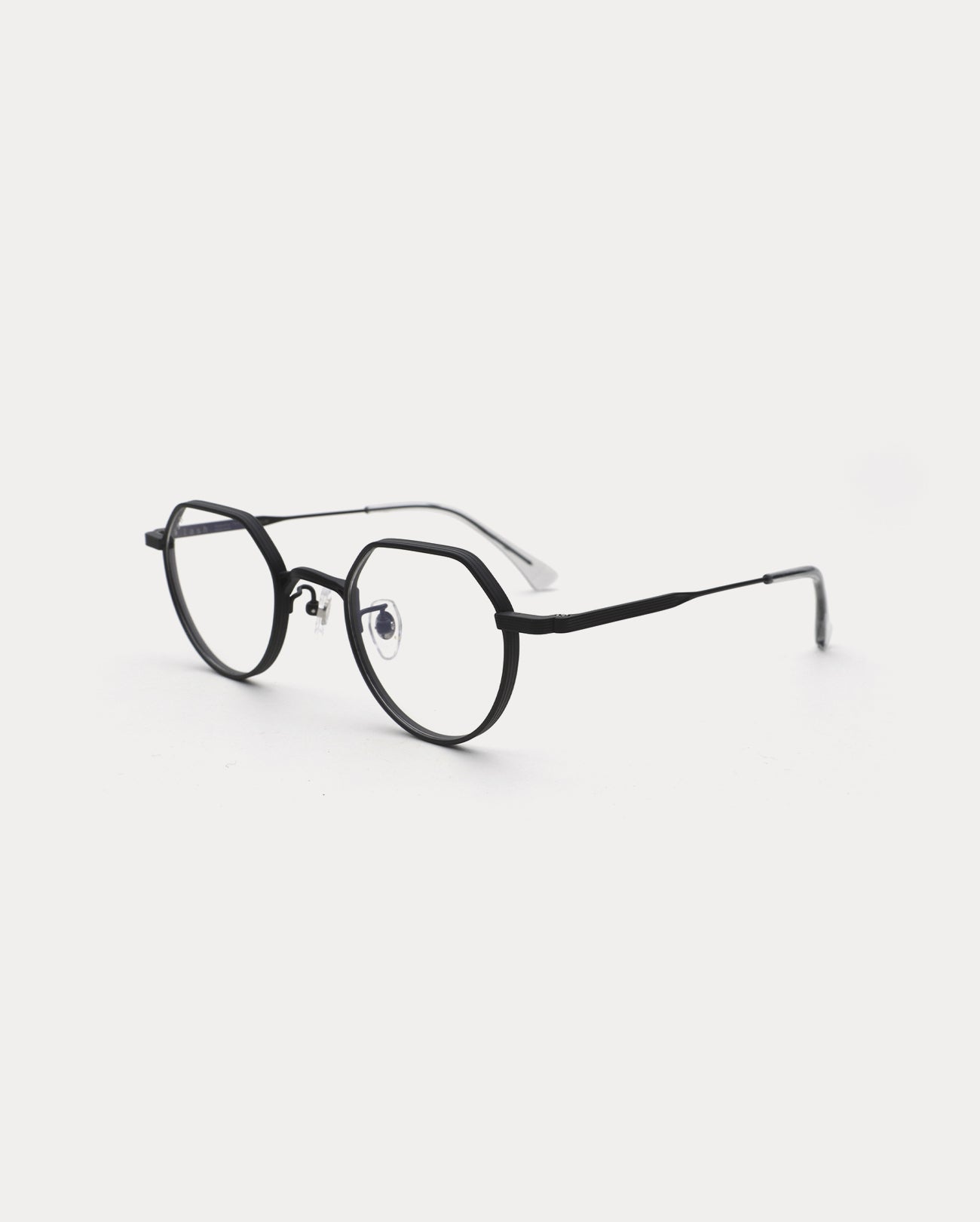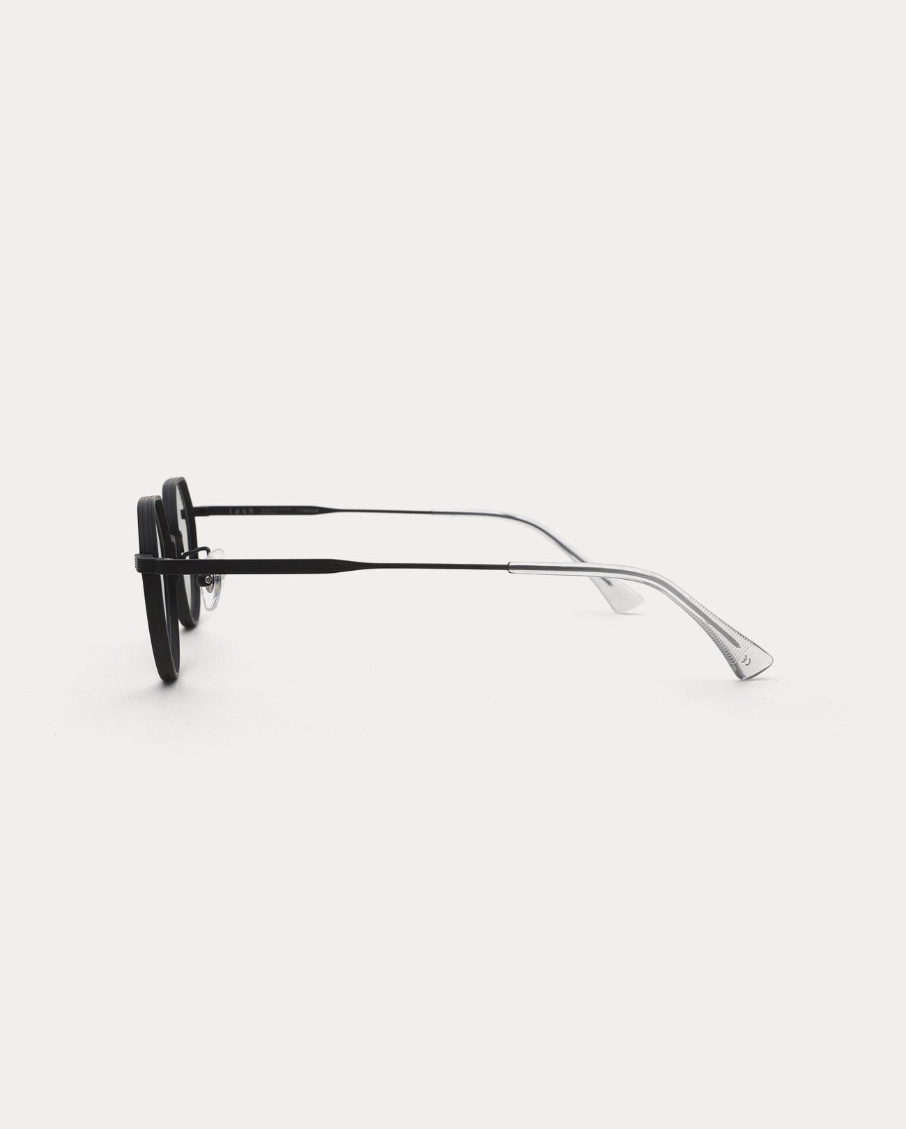 Crown-Panto metal optical frame. The front and temples are made of titanium. It features thin lines and lightness, comfortable fitting, and excellent durability.