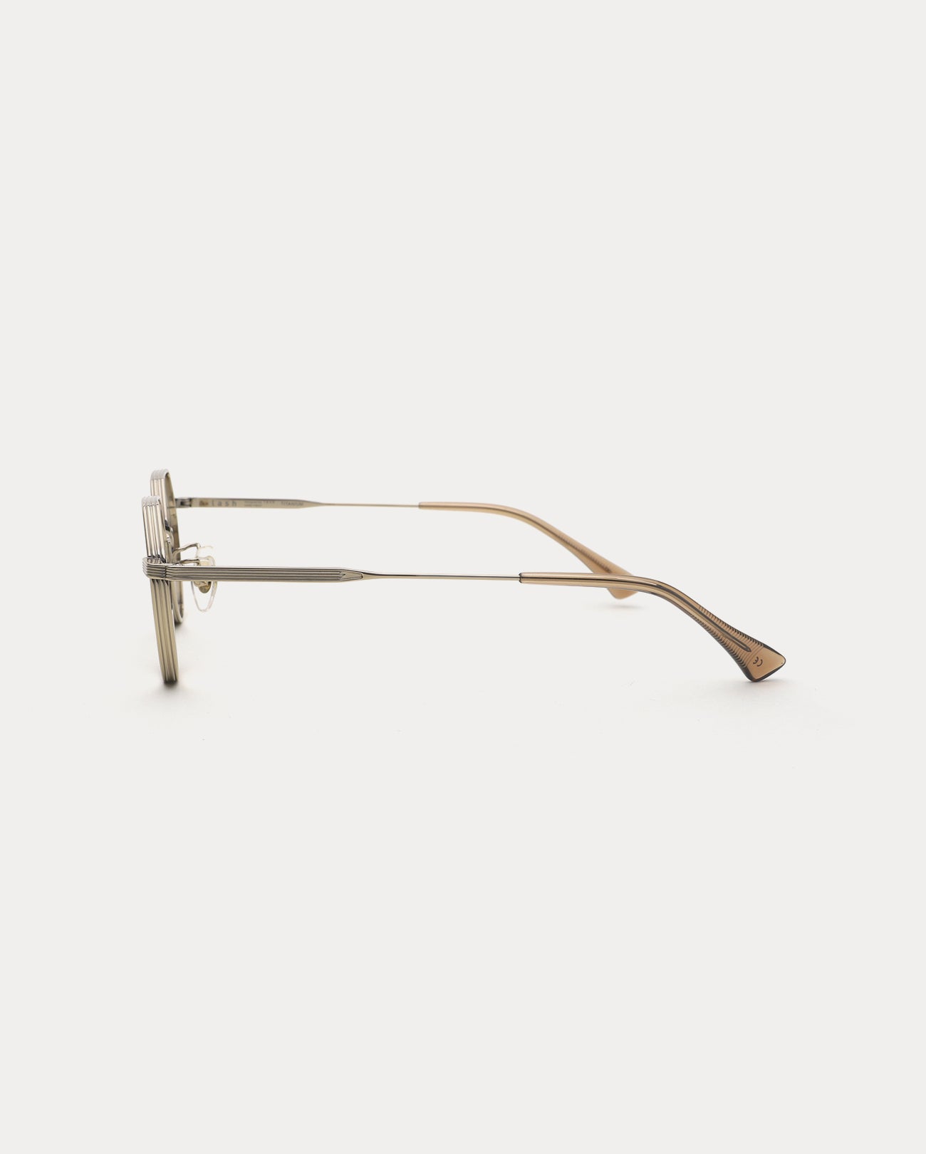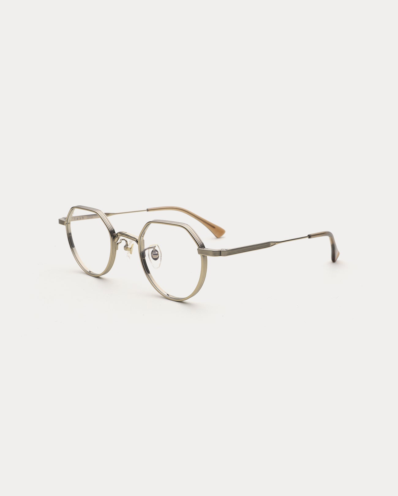 Crown-Panto metal optical frame. The front and temples are made of titanium. It features thin lines and lightness, comfortable fitting, and excellent durability.