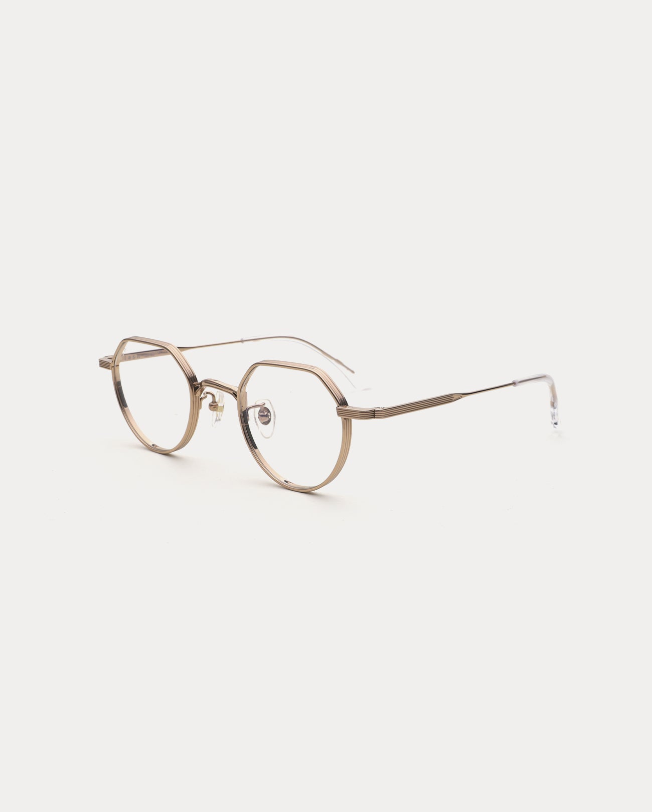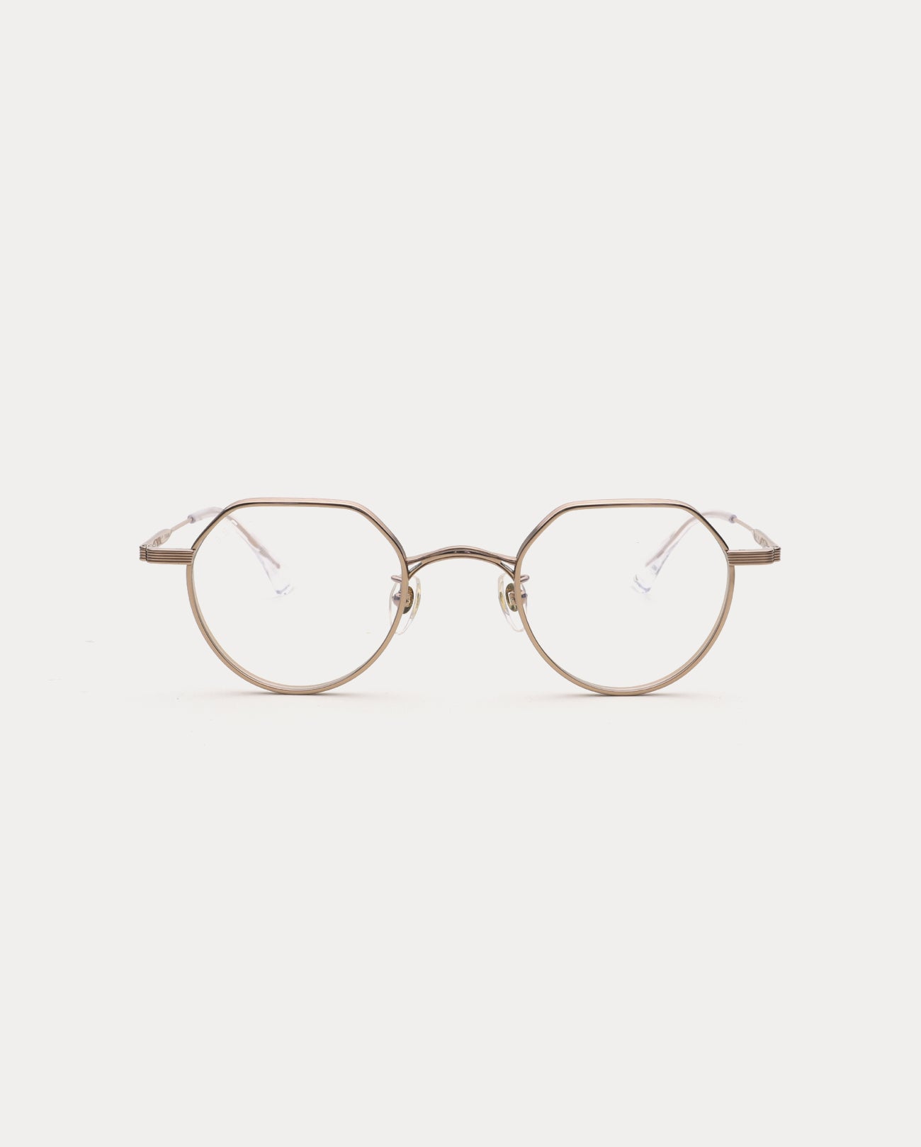 Crown-Panto metal optical frame. The front and temples are made of titanium. It features thin lines and lightness, comfortable fitting, and excellent durability.
