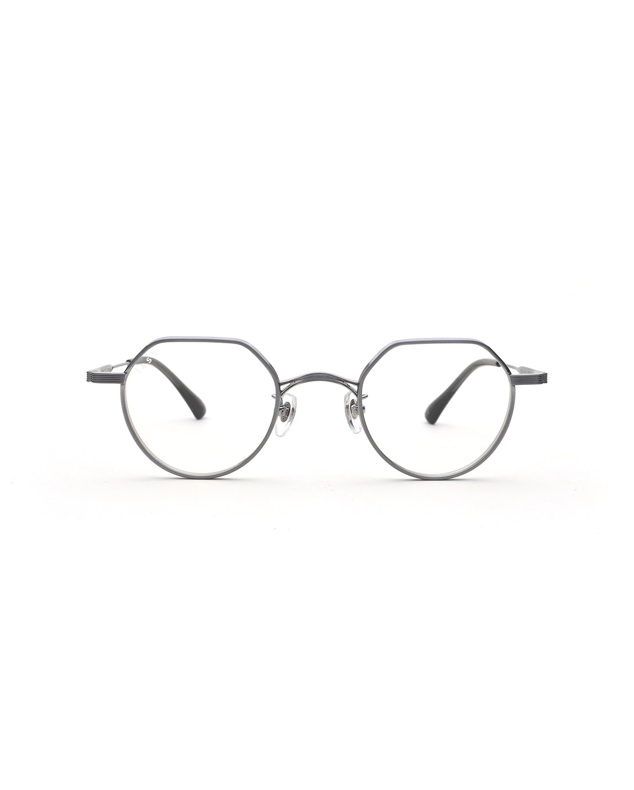 Crown-Panto metal optical frame. The front and temples are made of titanium. It features thin lines and lightness, comfortable fitting, and excellent durability.