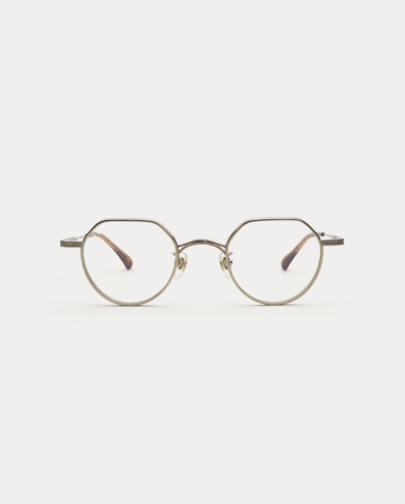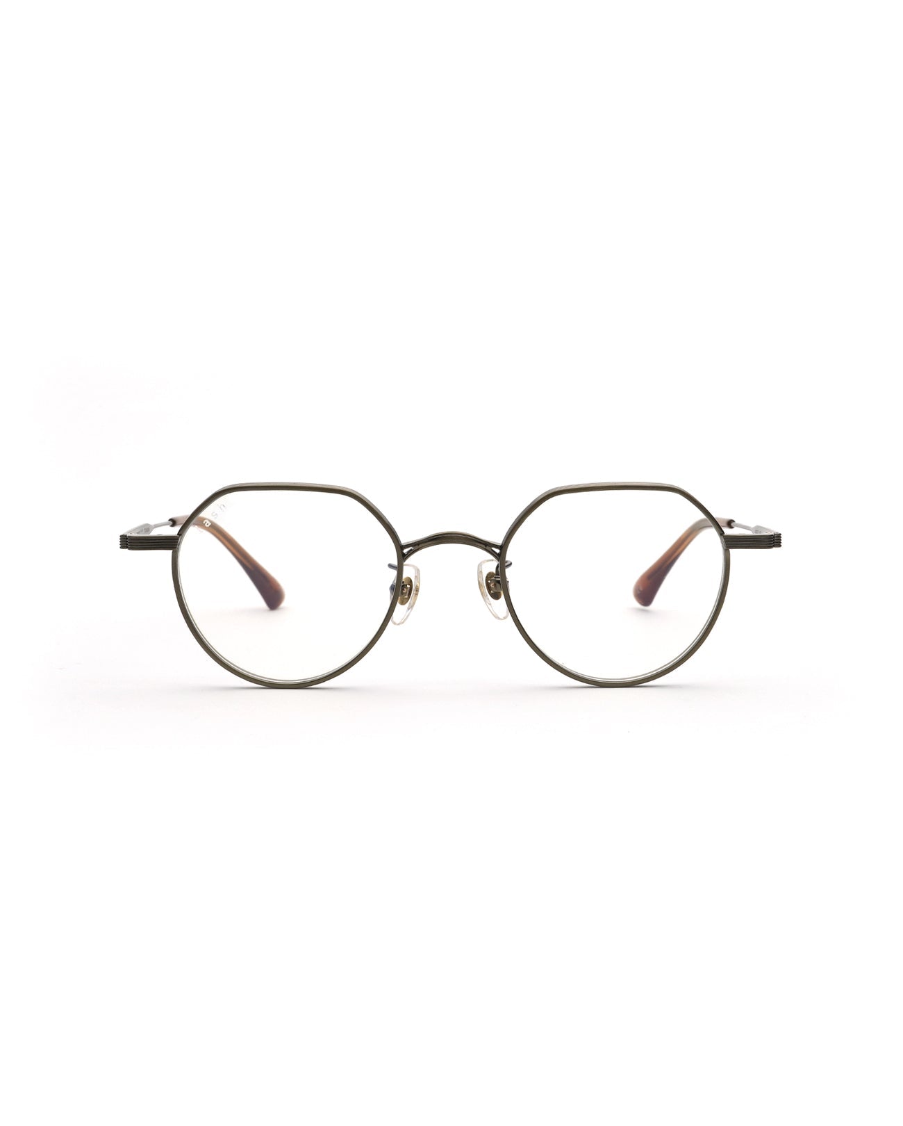 Crown-Panto metal optical frame. The front and temples are made of titanium. It features thin lines and lightness, comfortable fitting, and excellent durability.