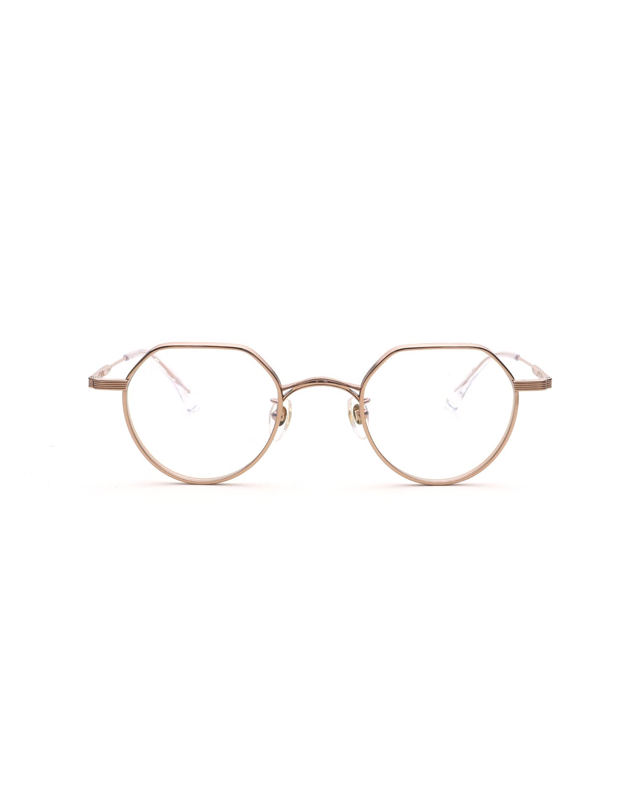 Crown-Panto metal optical frame. The front and temples are made of titanium. It features thin lines and lightness, comfortable fitting, and excellent durability.