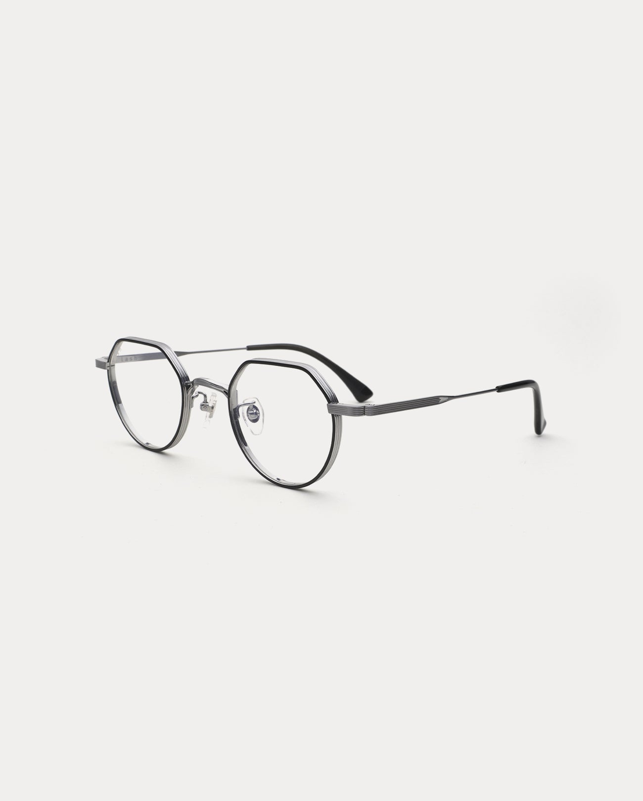Crown-Panto metal optical frame. The front and temples are made of titanium. It features thin lines and lightness, comfortable fitting, and excellent durability.