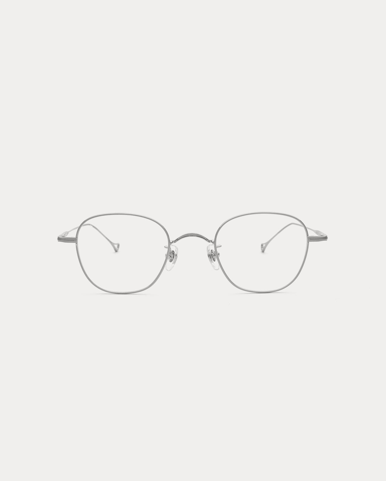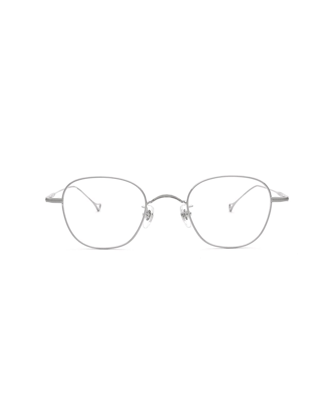 Square metal optical frame. The front and temples are made of titanium. It features thin lines and lightness, comfortable fitting, and excellent durability.