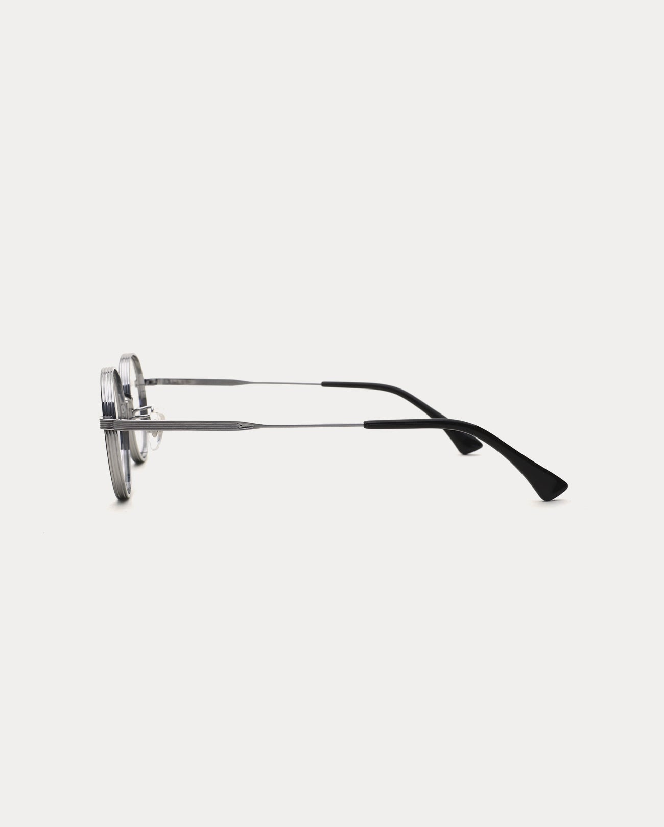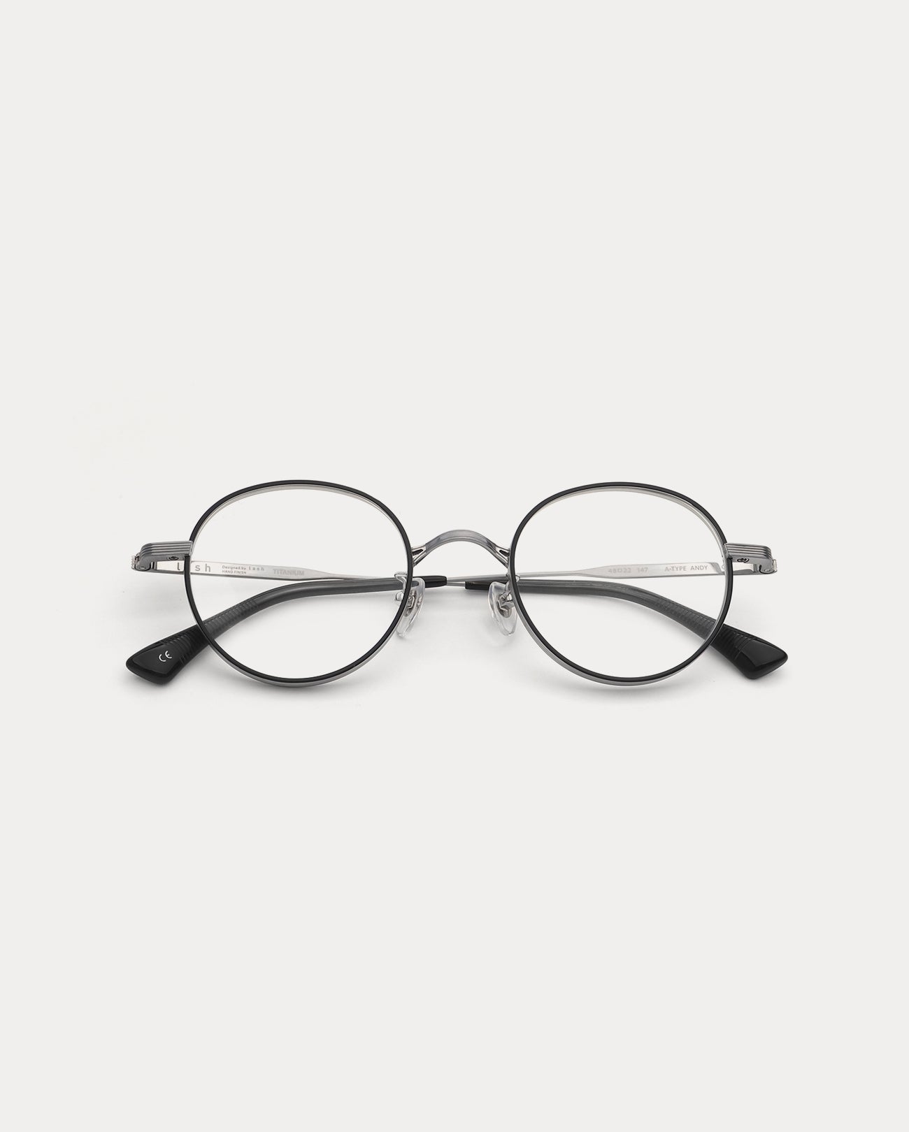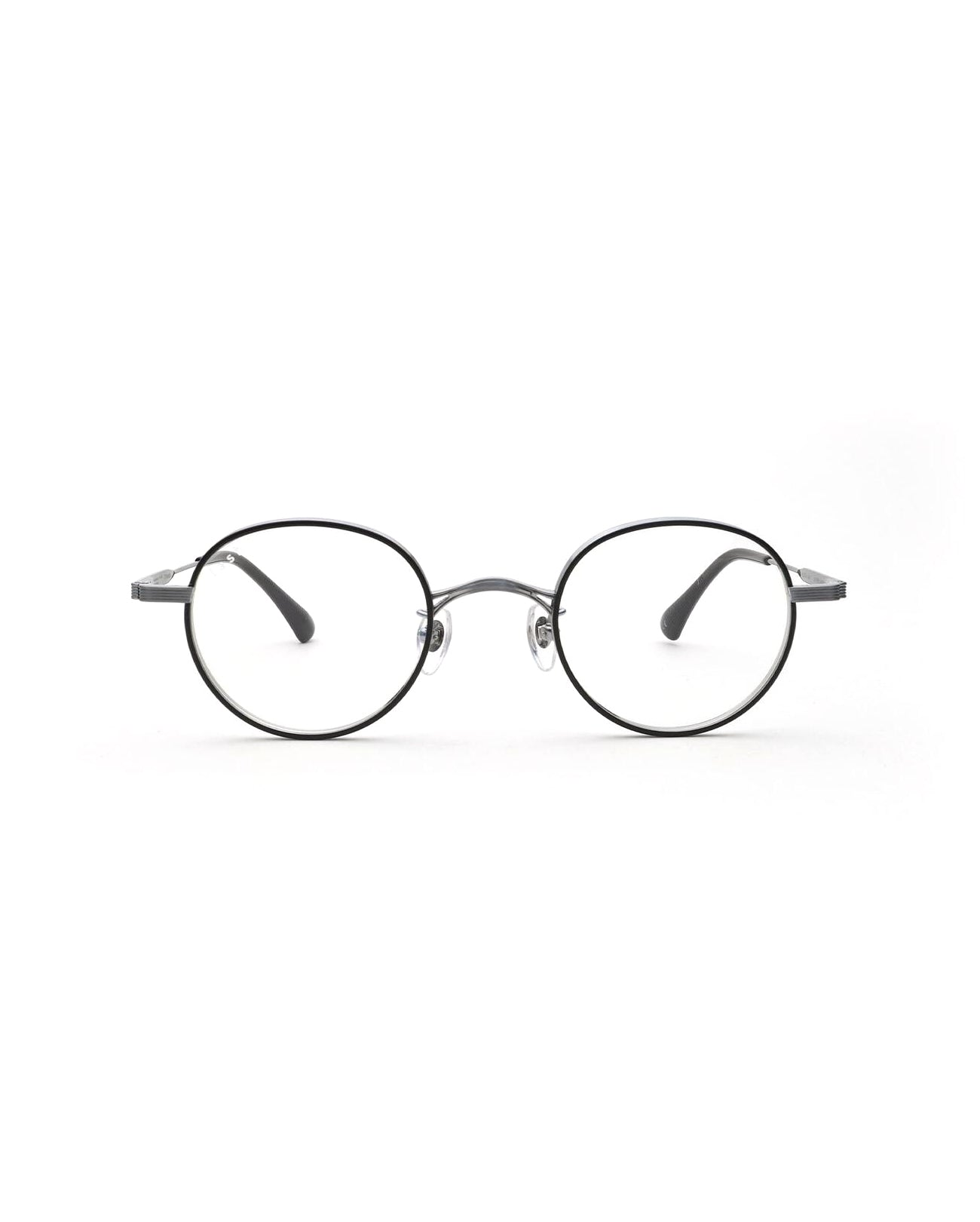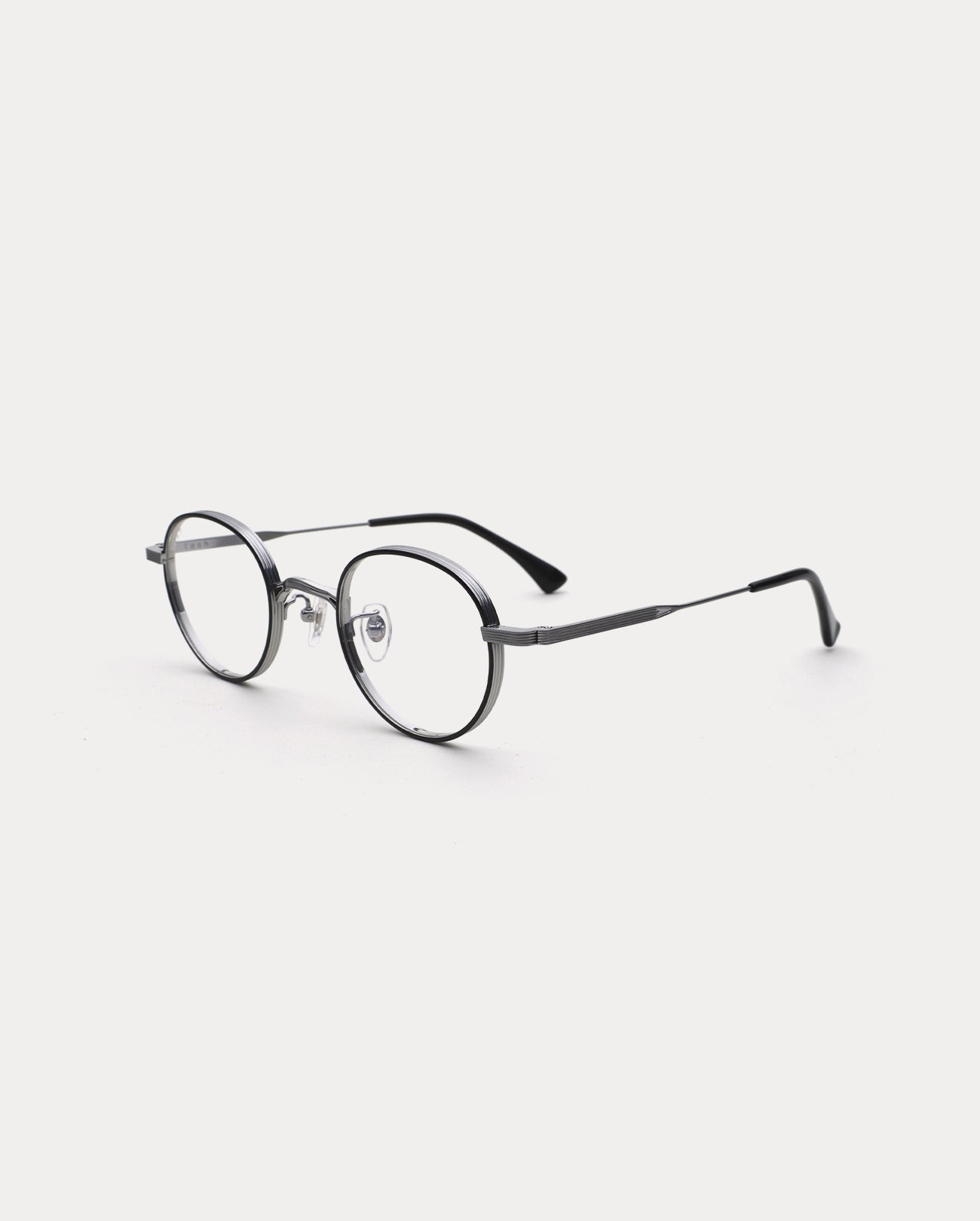 Round metal optical frame. The front and temples are made of titanium. It features thin lines and lightness, comfortable fitting, and excellent durability.