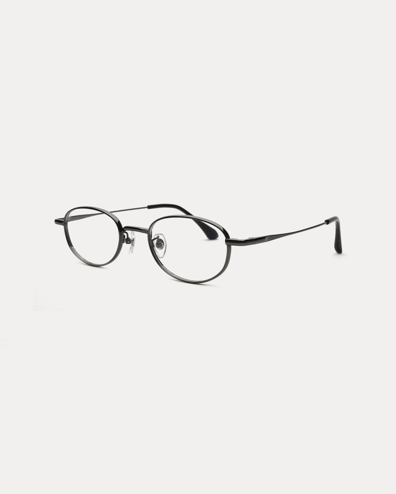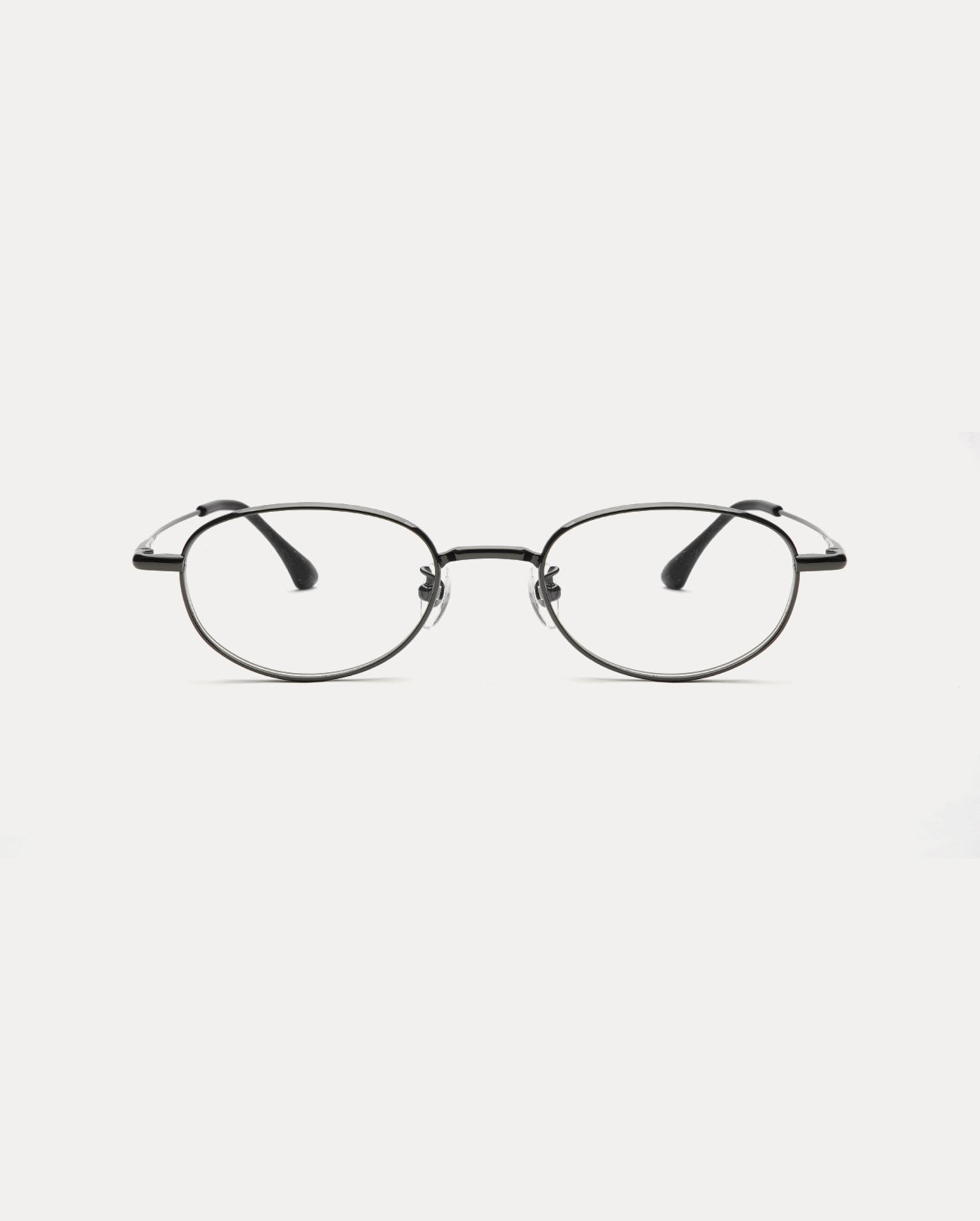 These are oval-shaped full titanium eyeglass frames. The rounded corners and thick rims and temples create a soft impression and a sense of stability, while the edge details on the bridge and temples reduce monotony and add a point of interest. Furthermore, the acetate tip structure evenly distributes weight for a comfortable fit.