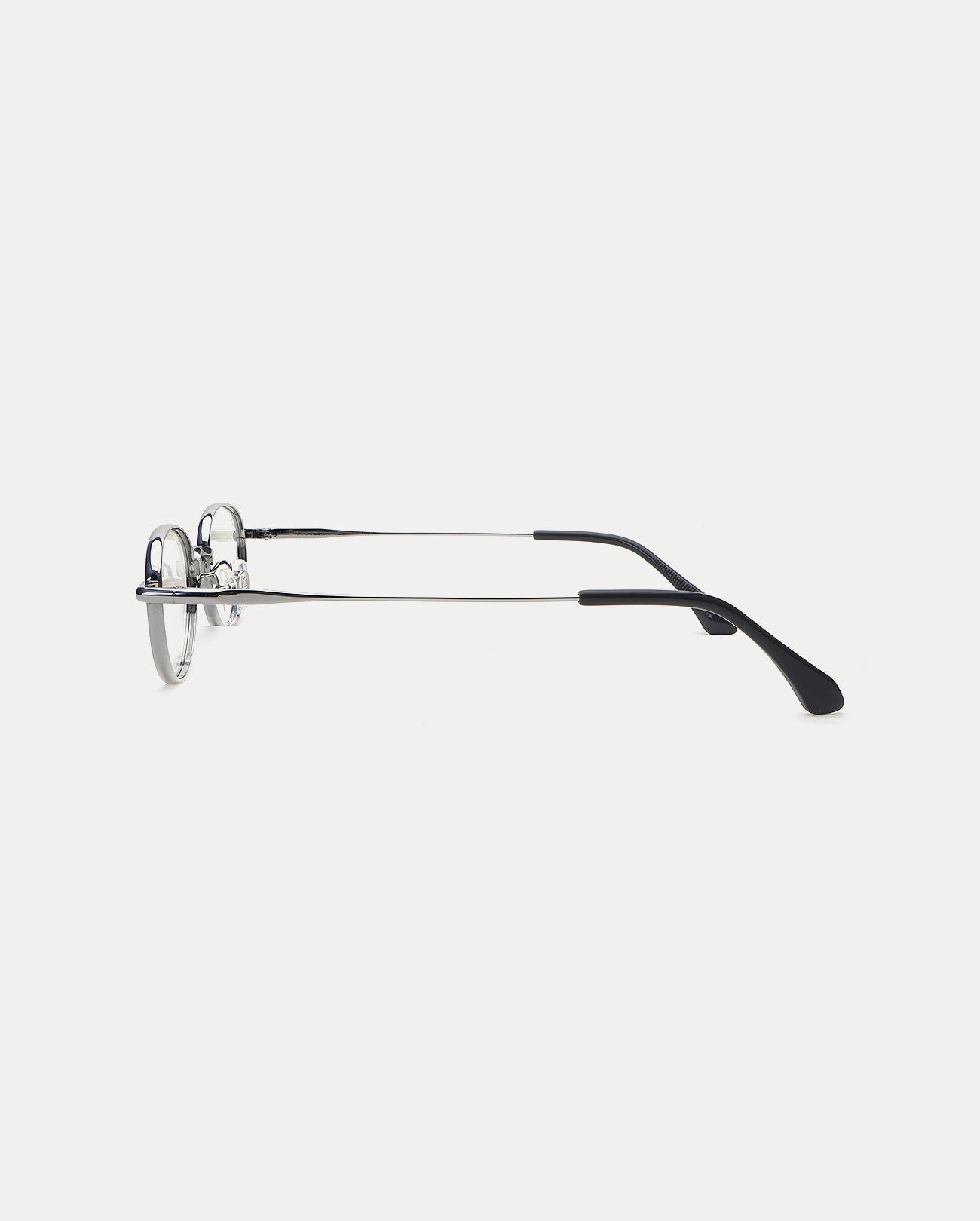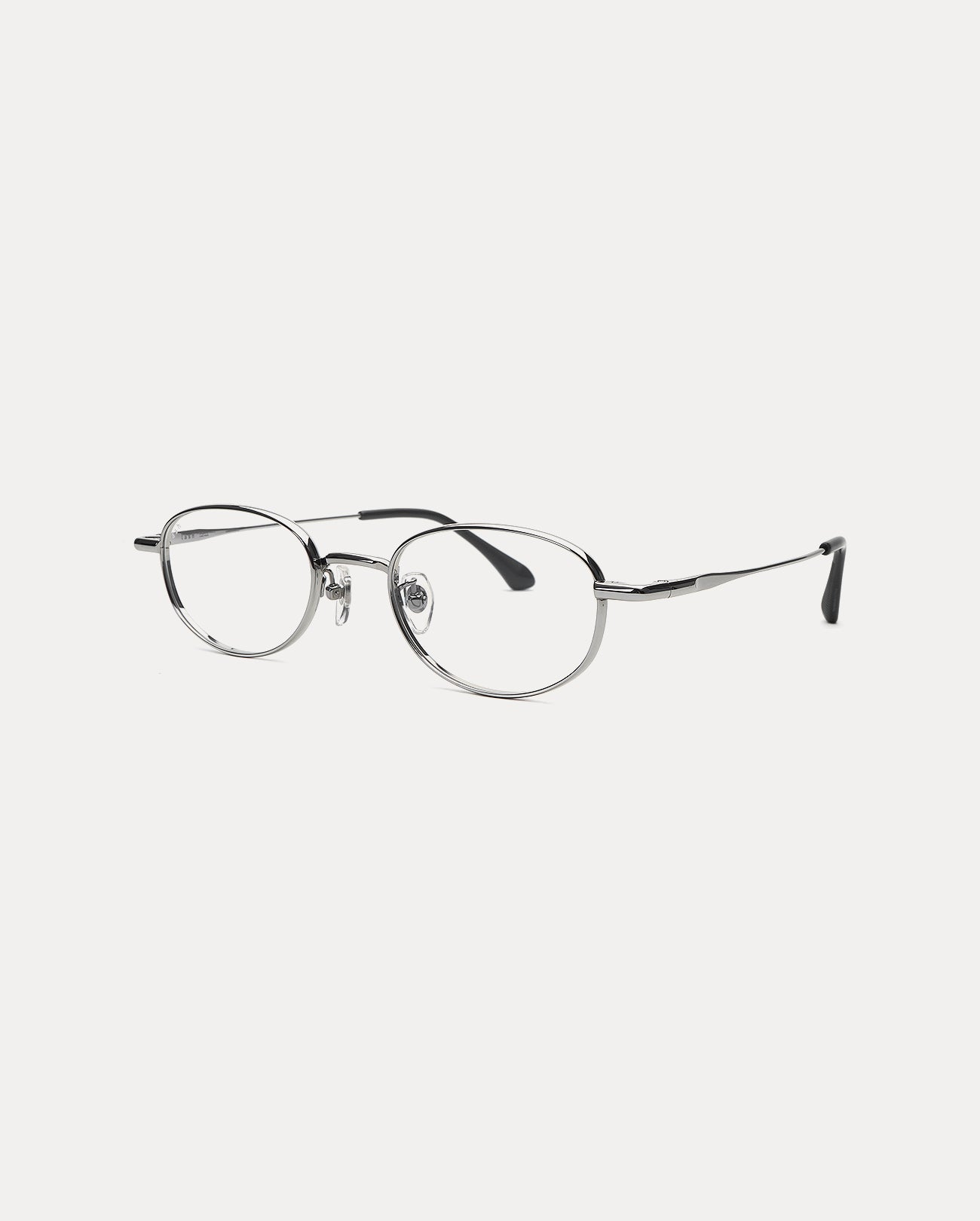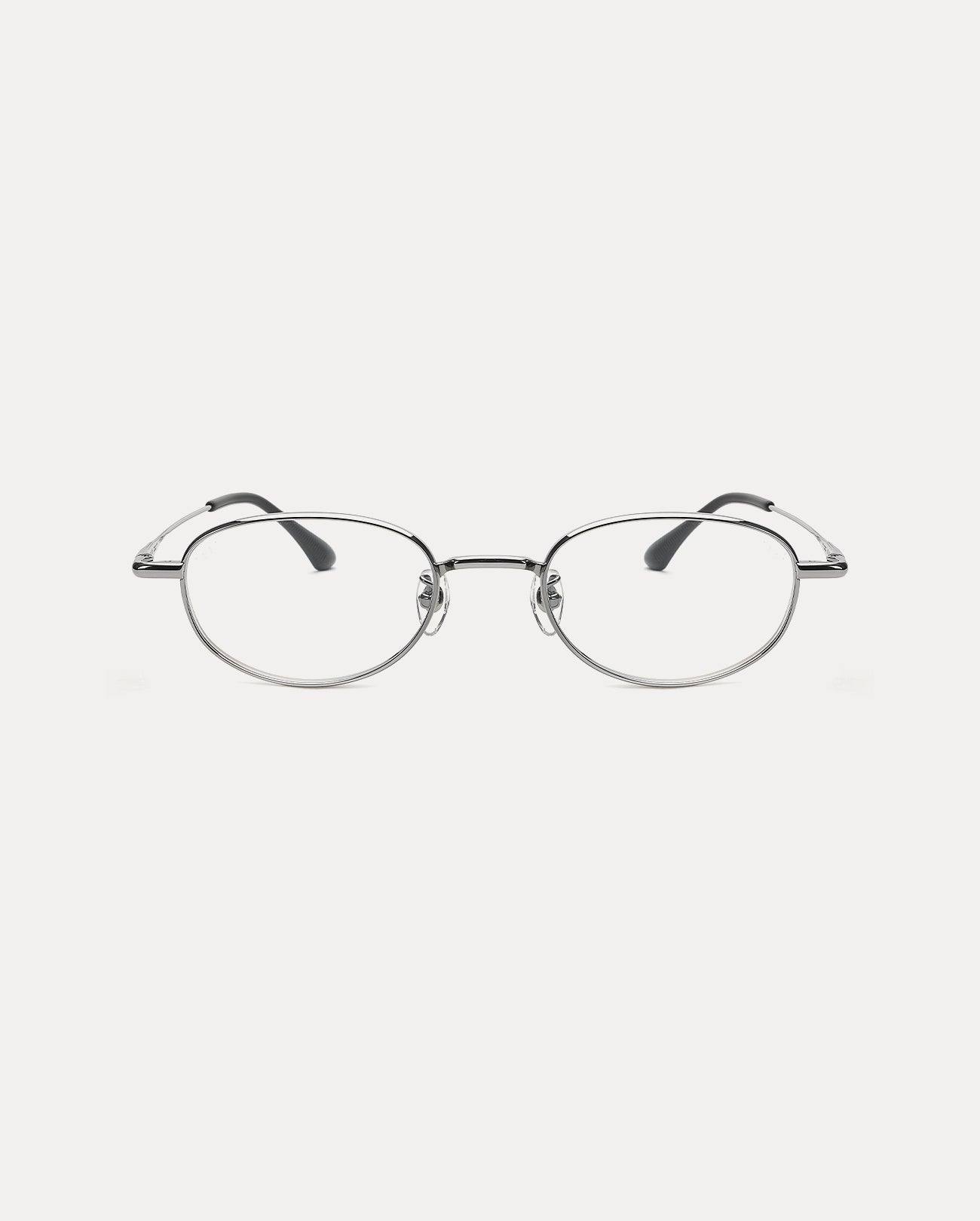 These are oval-shaped full titanium eyeglass frames. The rounded corners and thick rims and temples create a soft impression and a sense of stability, while the edge details on the bridge and temples reduce monotony and add a point of interest. Furthermore, the acetate tip structure evenly distributes weight for a comfortable fit.