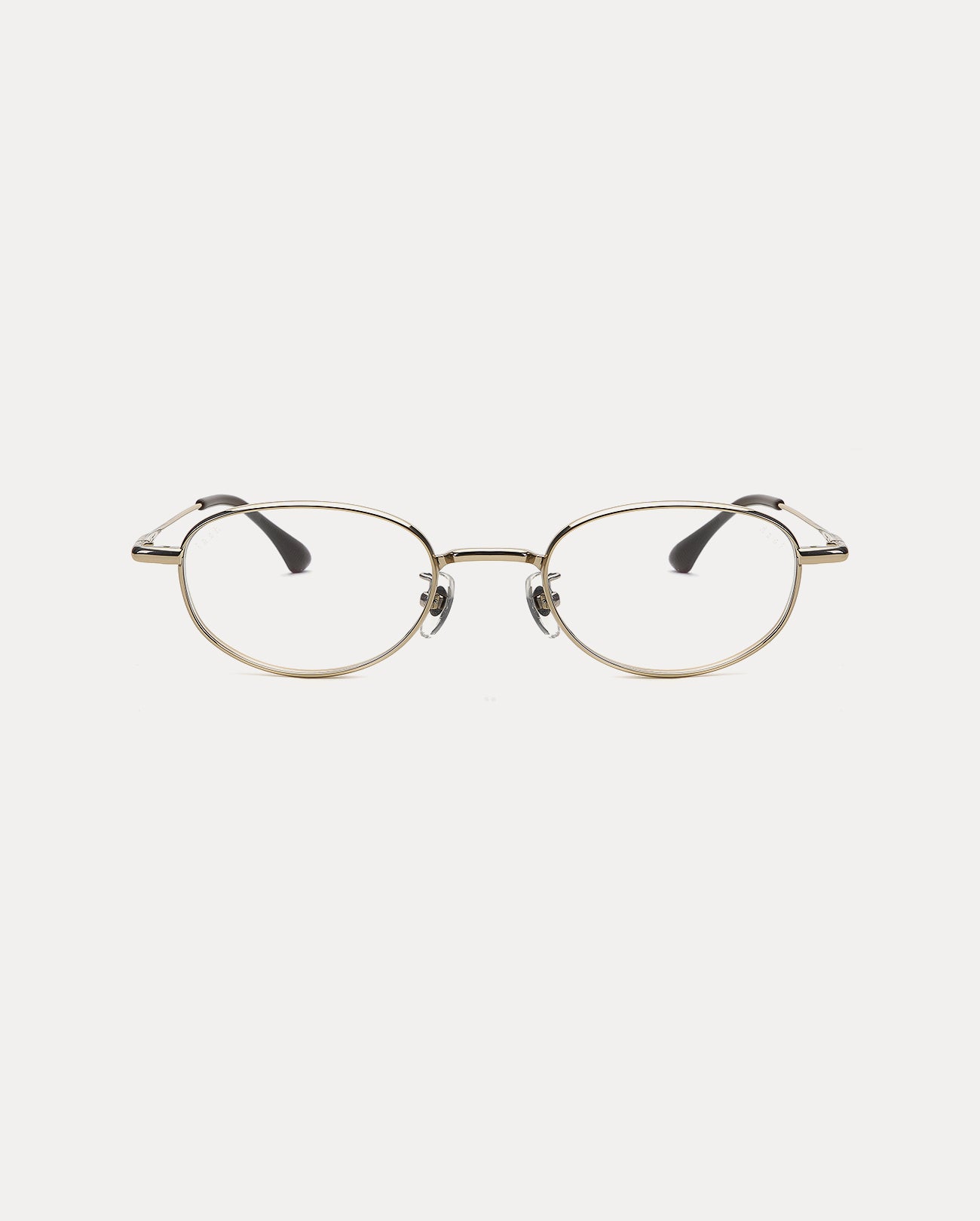 These are oval-shaped full titanium eyeglass frames. The rounded corners and thick rims and temples create a soft impression and a sense of stability, while the edge details on the bridge and temples reduce monotony and add a point of interest. Furthermore, the acetate tip structure evenly distributes weight for a comfortable fit.