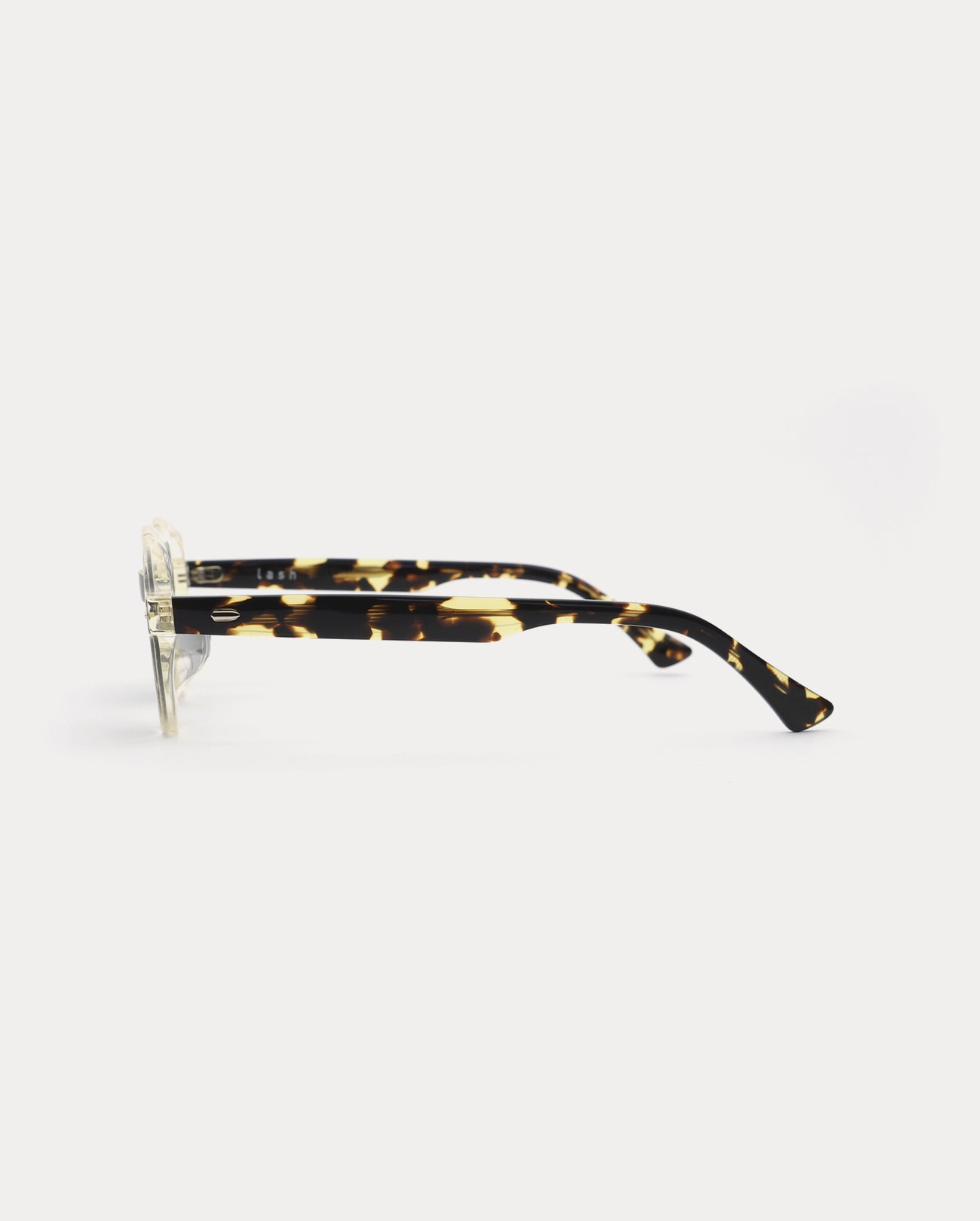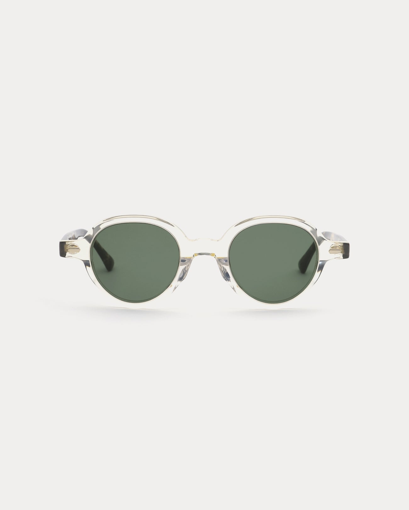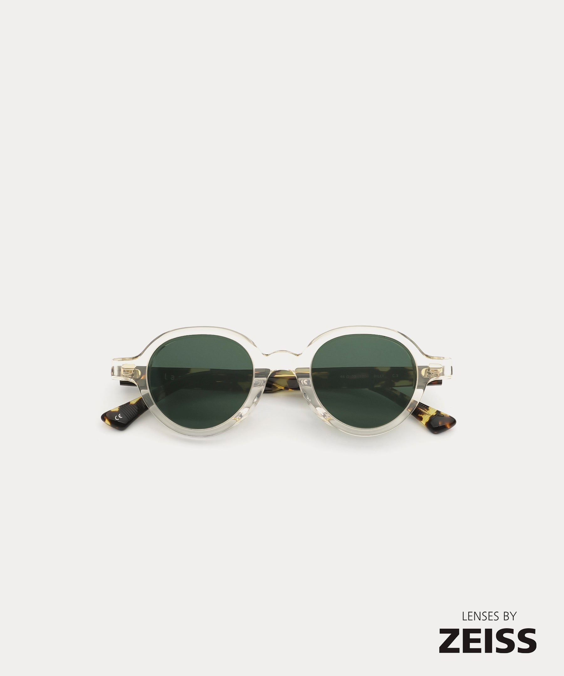 Round acetate Sunglass frame. The lens size is relatively smaller than general sunglasses, but the bridge and endpiece are long, making it easy to wear, and creating a classic mood. In addition, the front is made flat between the lens and the frame, showing a differentiated appearance.