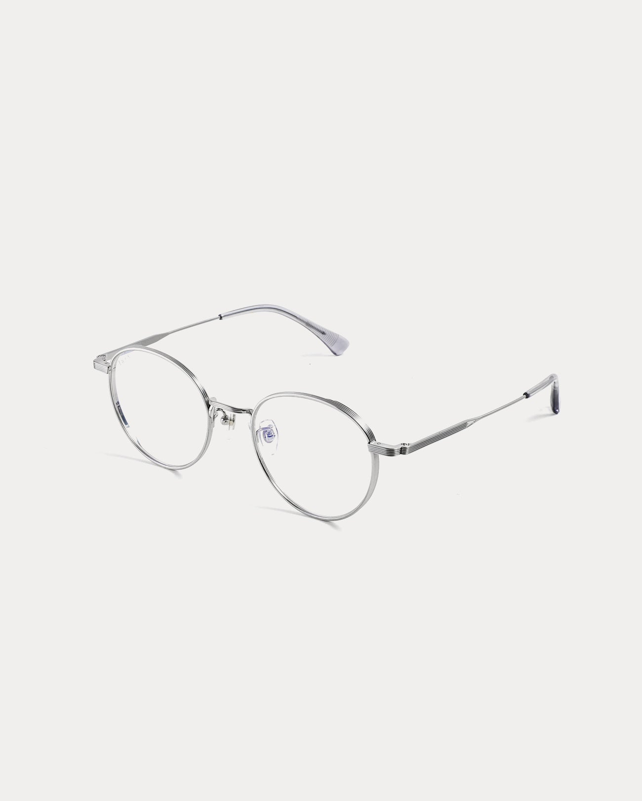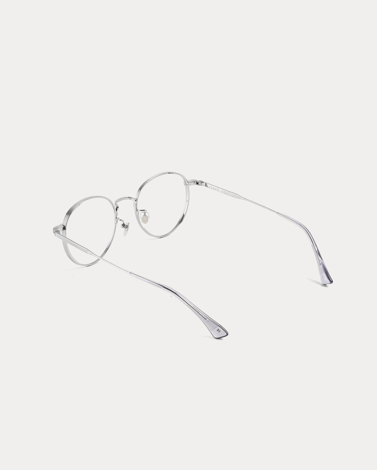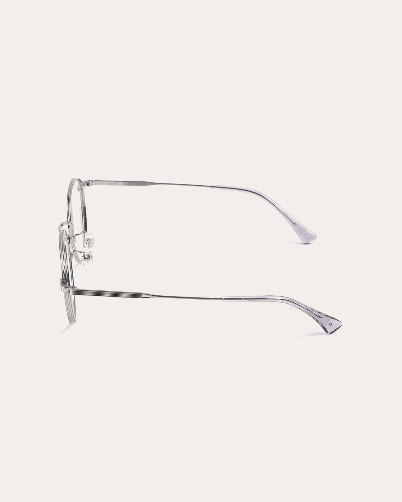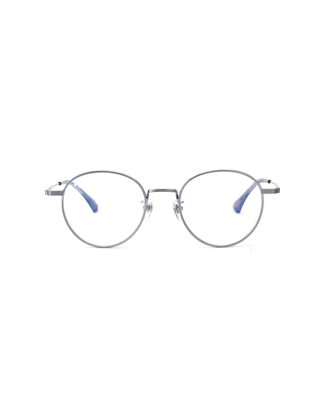 Round metal optical frame. The line details applied to the bridge, rim, end piece, and temple are uniform and make the product stand out. The engraved line details applied to the bridge, rims, end piece, and temple are uniform and make the product stand out. The voluminous temple tip balances the weight to provide comfort fitting.