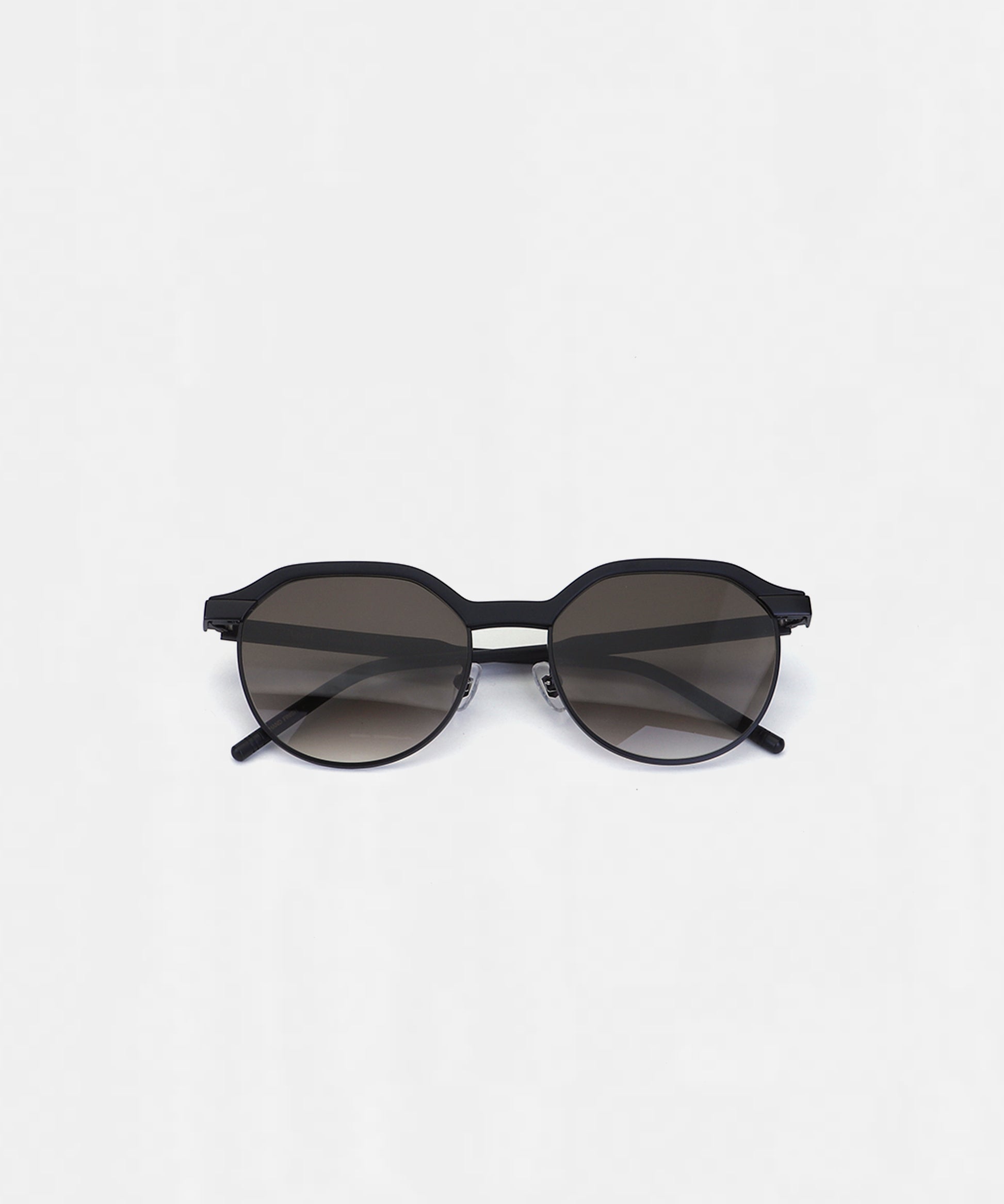 The acetate design details connecting the bridge and the rim It is a combination sunglasses with a prominent polygonal eye shape.