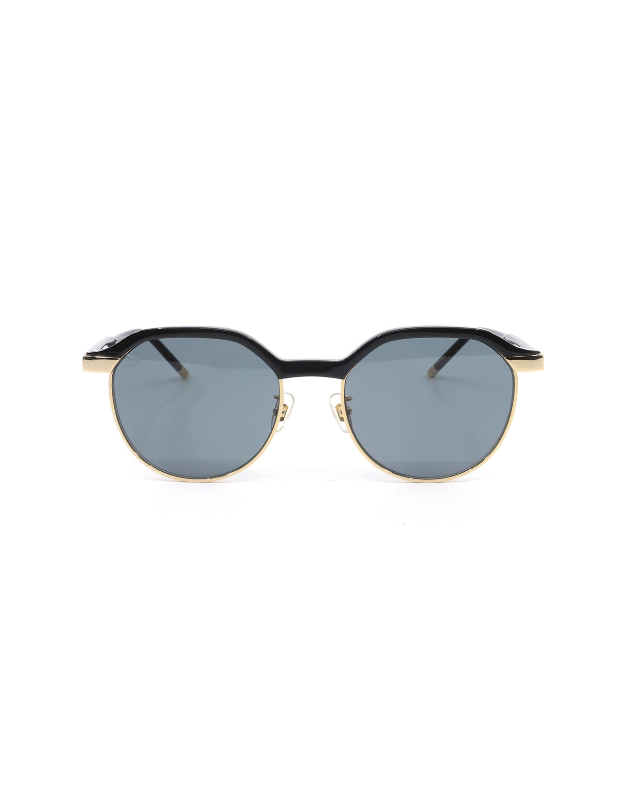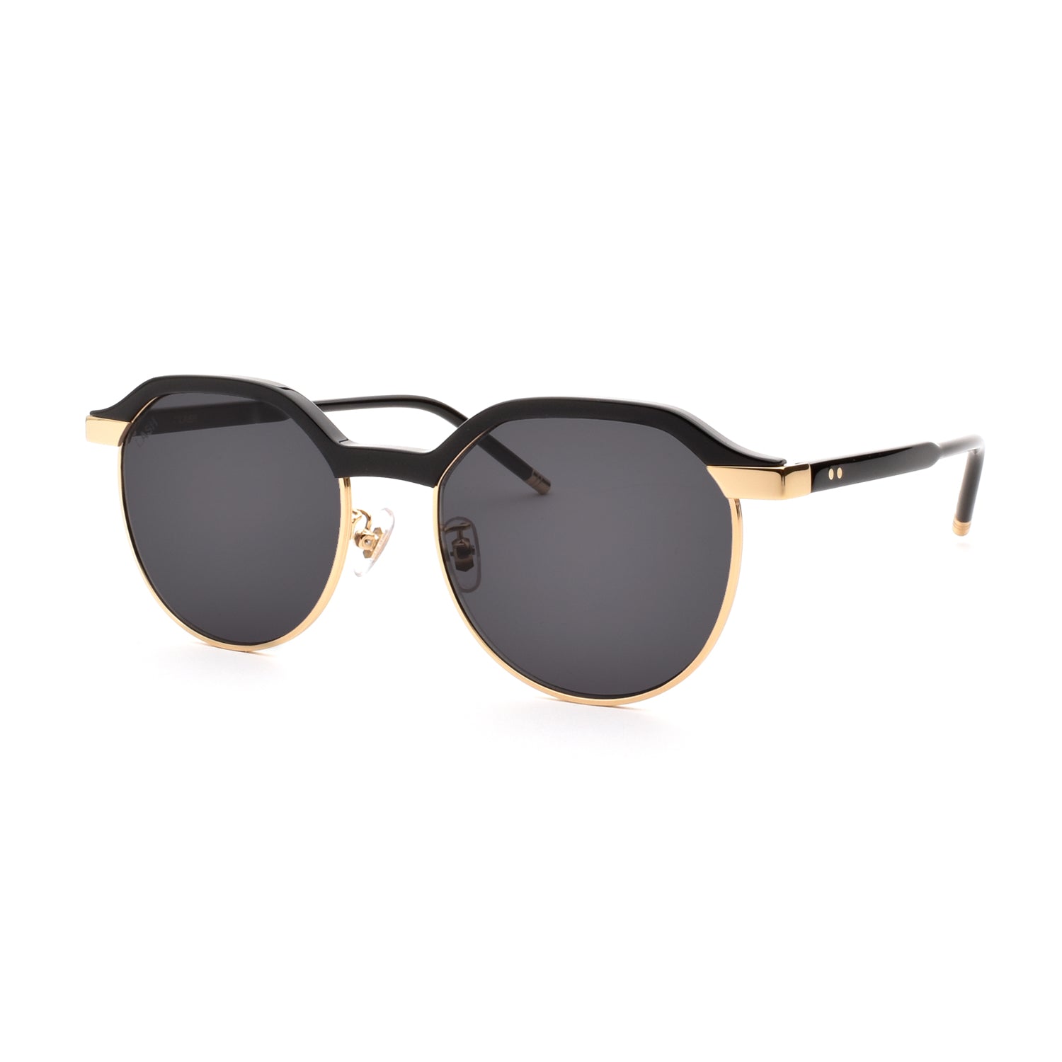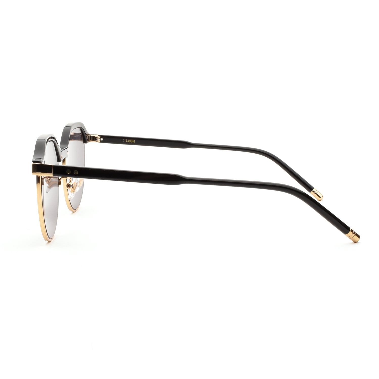 The acetate design details connecting the bridge and the rim It is a combination sunglasses with a prominent polygonal eye shape.