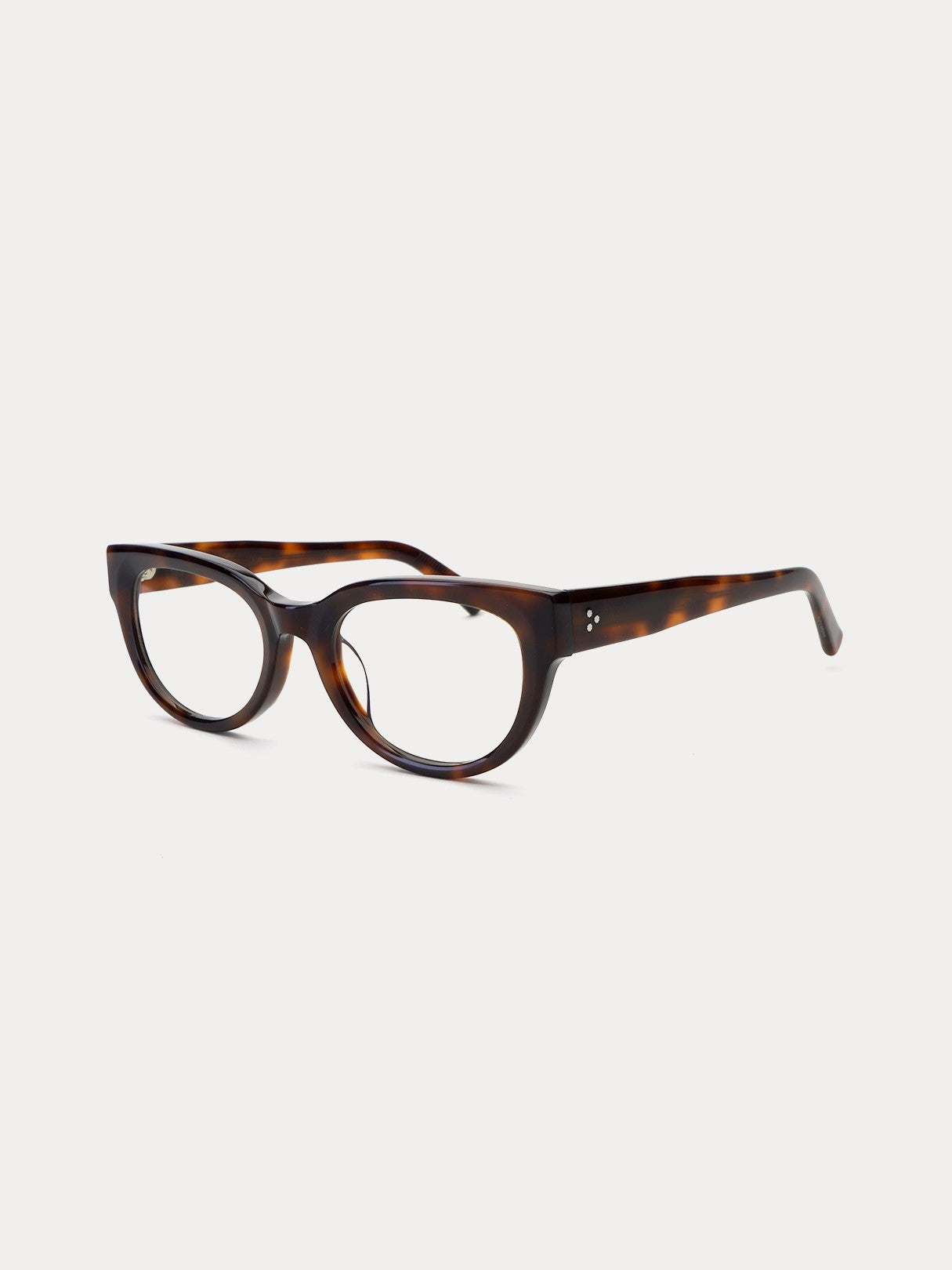 Full acetate spectacle frame based on a round shape. The cat-eye lens creates a sleek and trendy style. The details of the three star-shaped metal decorations coupled to the temple make the product stand out even more.