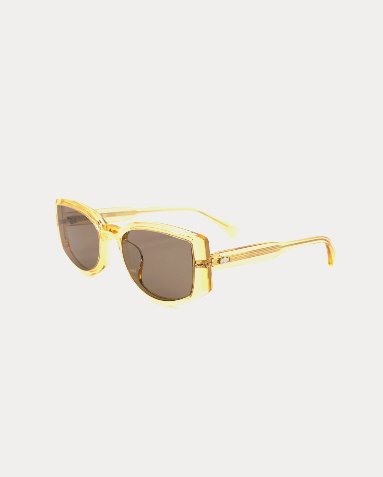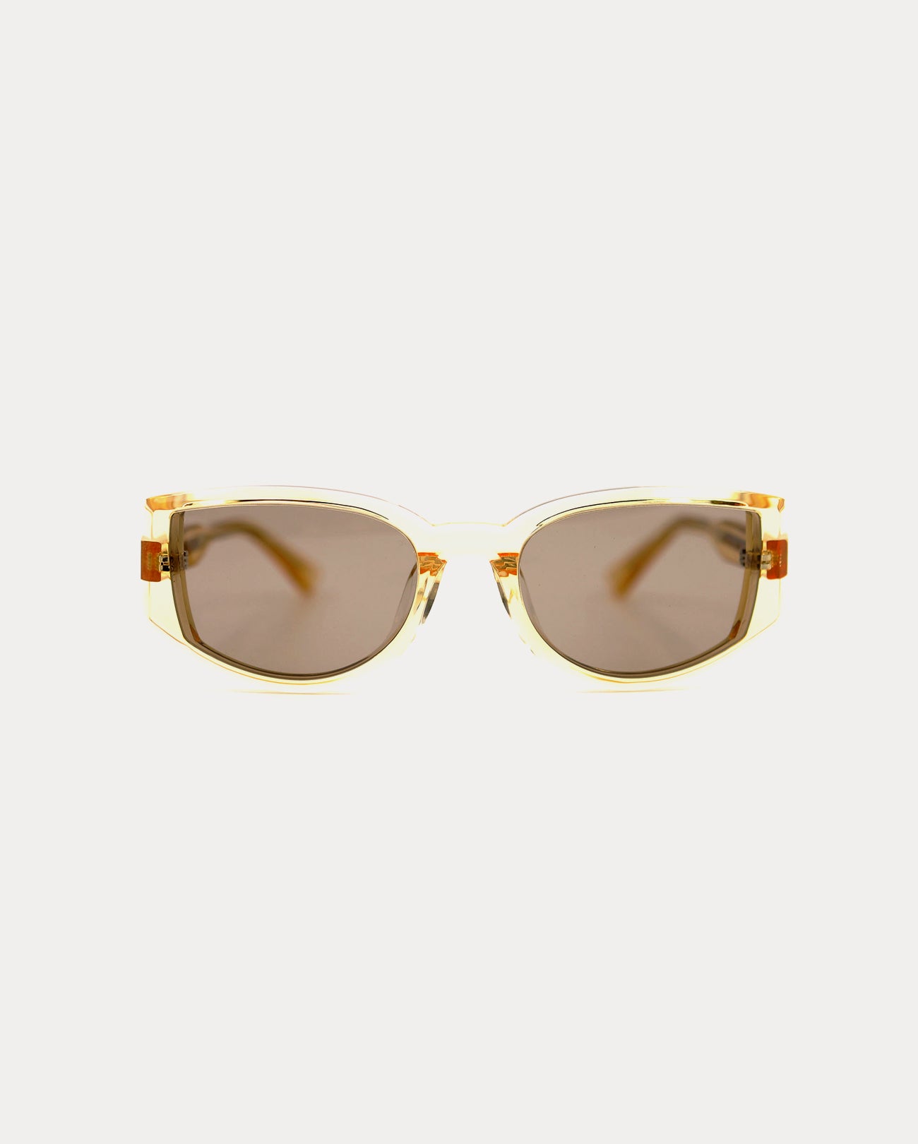 Flat square acetate sunglass it features a vertical falling outline. the bold silhouette creates a chic mood, and it is balanced through soft acetate processing that neutralizes it.
