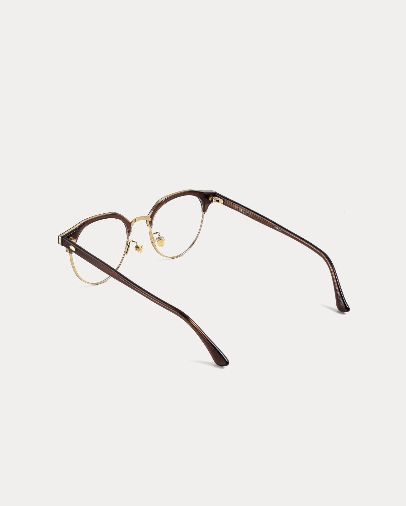 Crown-Panto acetate and stainless steel combination frame The thin silhouette and soft top line add sophistication, and the metal front between the acetates presents a luxurious mood.