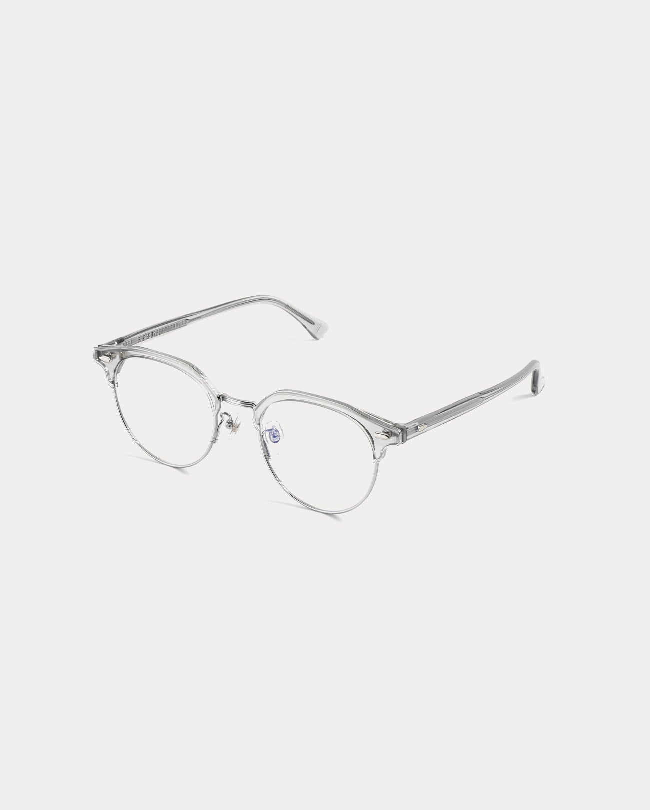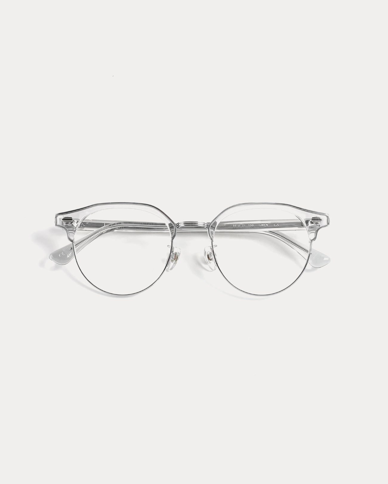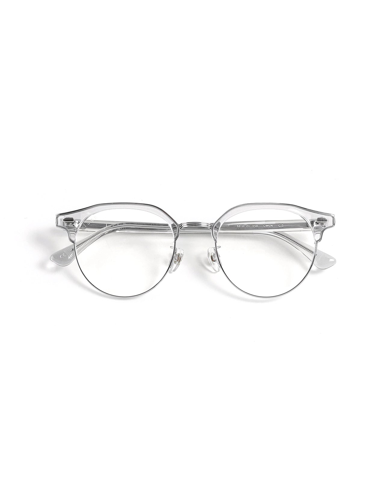 Crown-Panto acetate and stainless steel combination frame The thin silhouette and soft top line add sophistication, and the metal front between the acetates presents a luxurious mood.