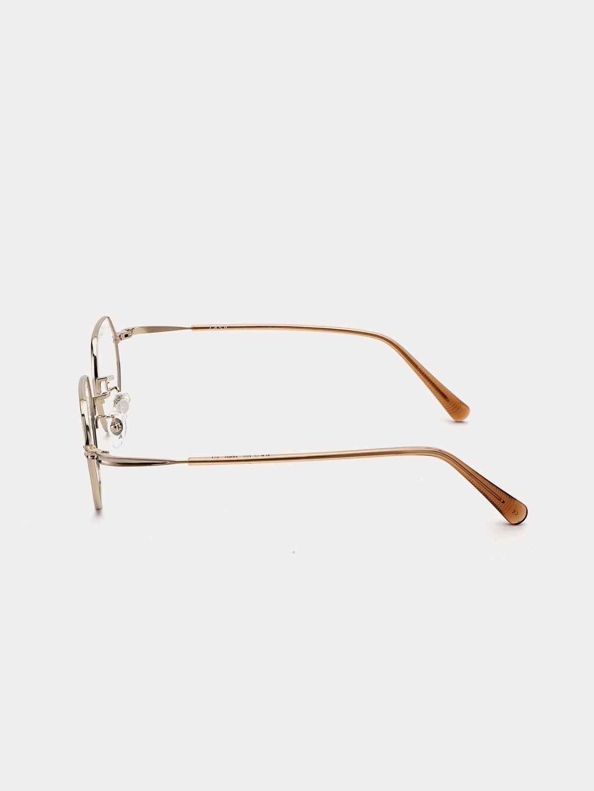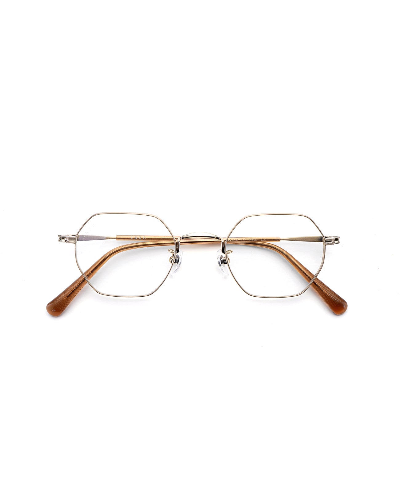 It is a new metal spectacle frame introduced in Refind, featuring a bridge, endpiece, and temple details with a simple rim and three-dimensional effect.