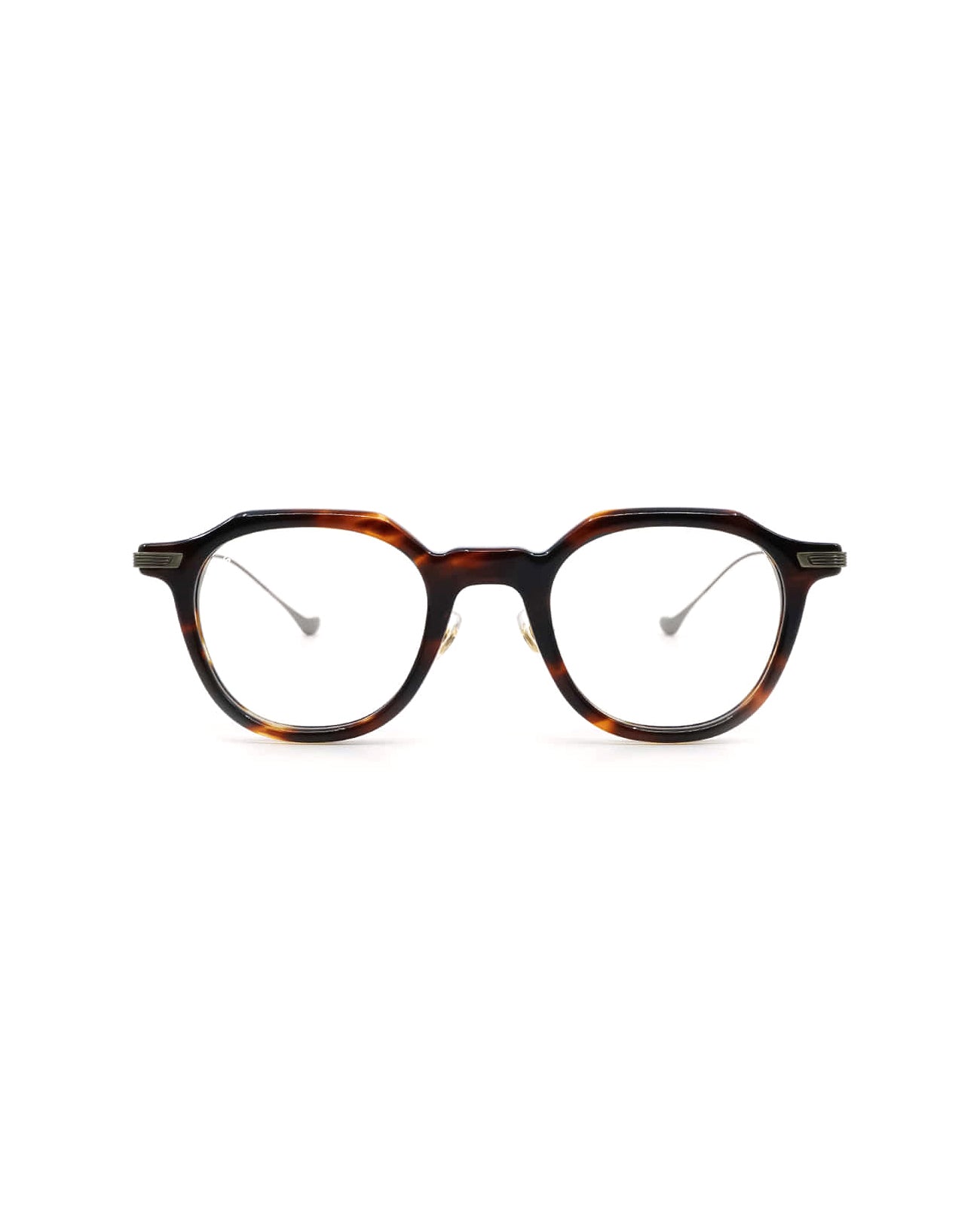Round Square acetate and titanium combination optical frame. It features the details applied on temples and end-piece of the front part. The overall shape is inspired by French crown pantos design. The frame provides a comfortable fitting by attaching the nose pad. It is perfect to wear daily with its basic shape.