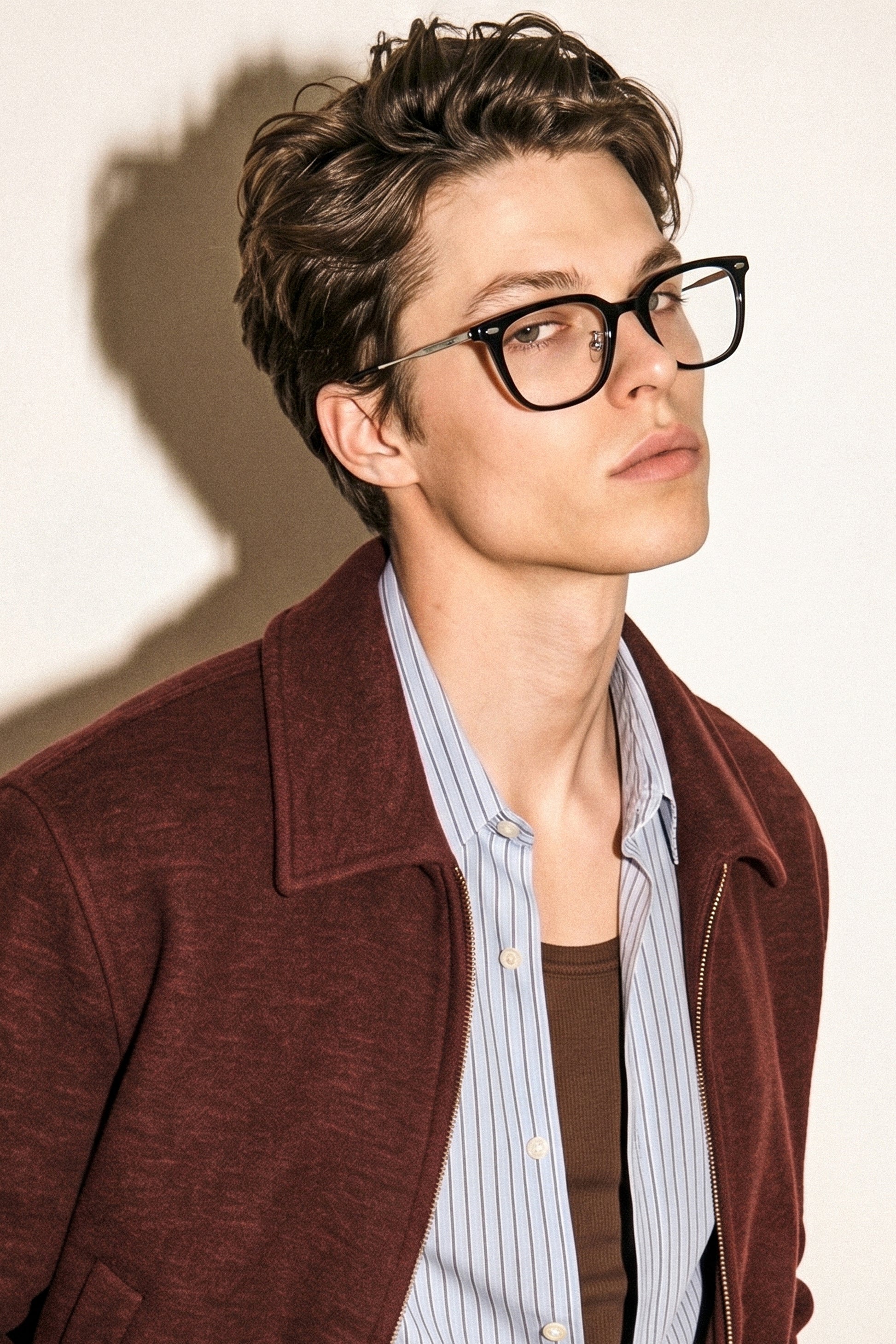 It features metal embellishment on the front and temples.