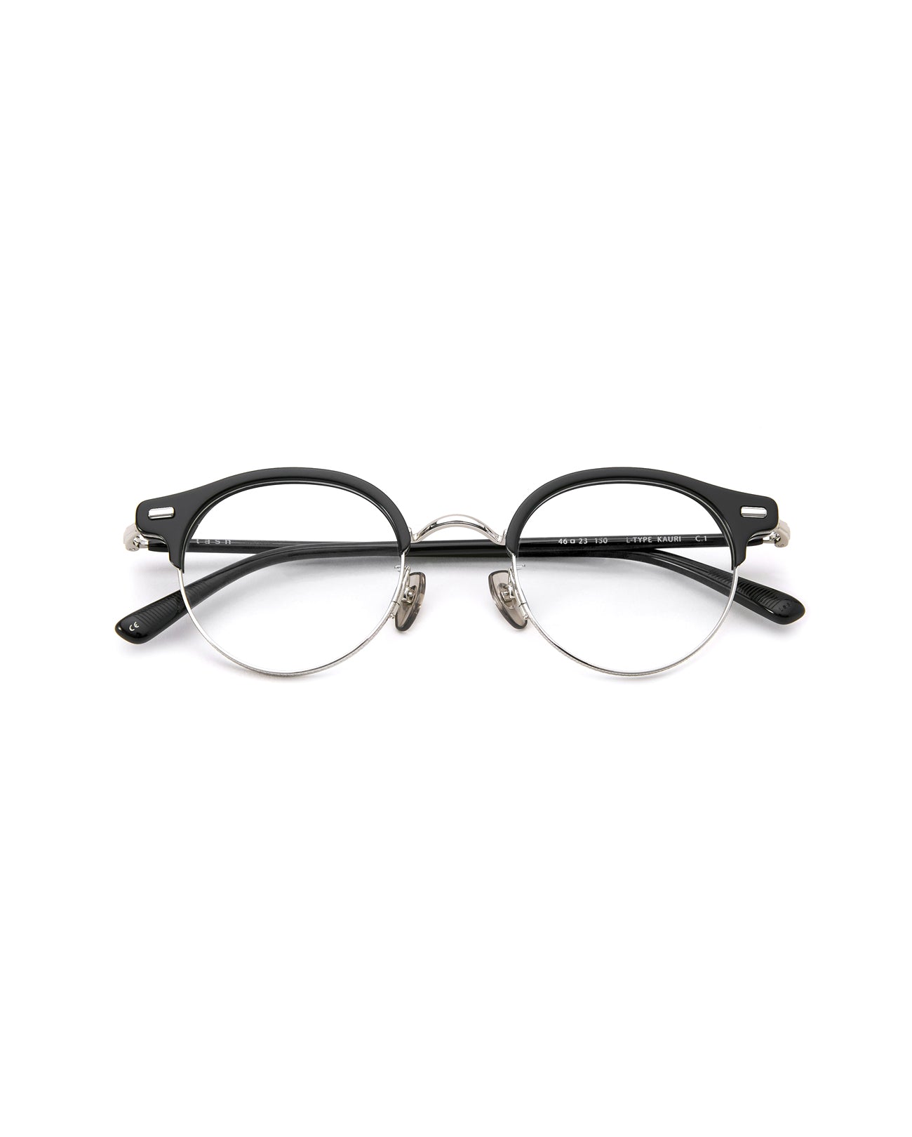 Round acetate and metal combination brow line optical frame. The refined edition is made with the minimum thickness of acetate (4mm), which gives a light and comfortable fit. It shows a natural silhouette with Refined Edition's unique endpiece design that falls softly and flexibly from the end of the frame. It features the signature engraving de