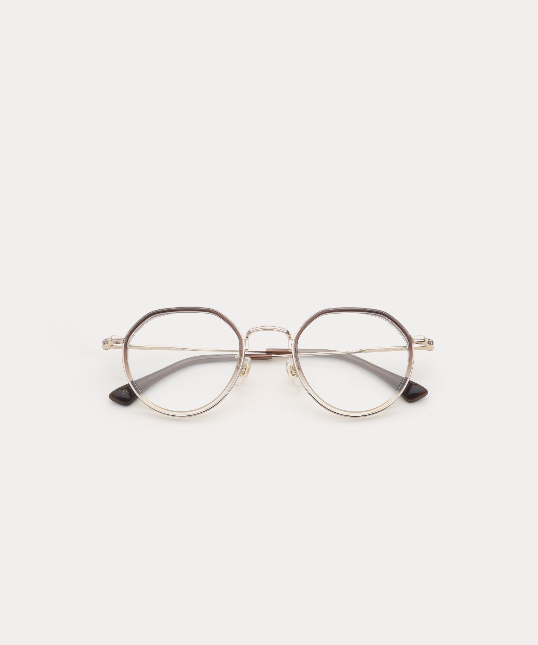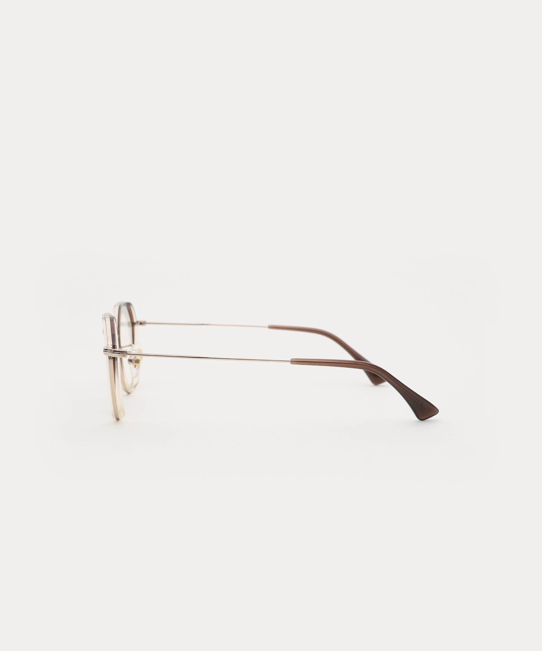 Crown-Panto shape combination spectacle frame. It's easy with the acetate inner rim detail inside the metal rim