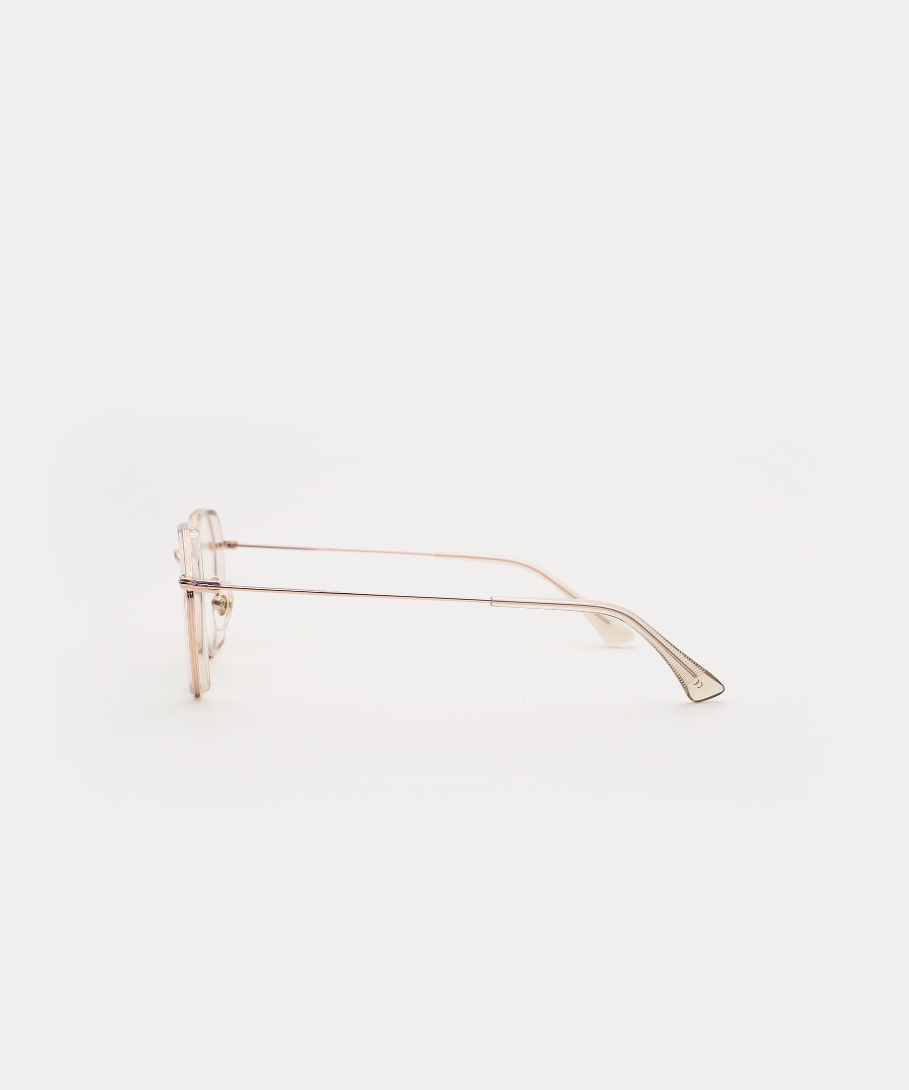 Crown-Panto shape combination spectacle frame. It's easy with the acetate inner rim detail inside the metal rim