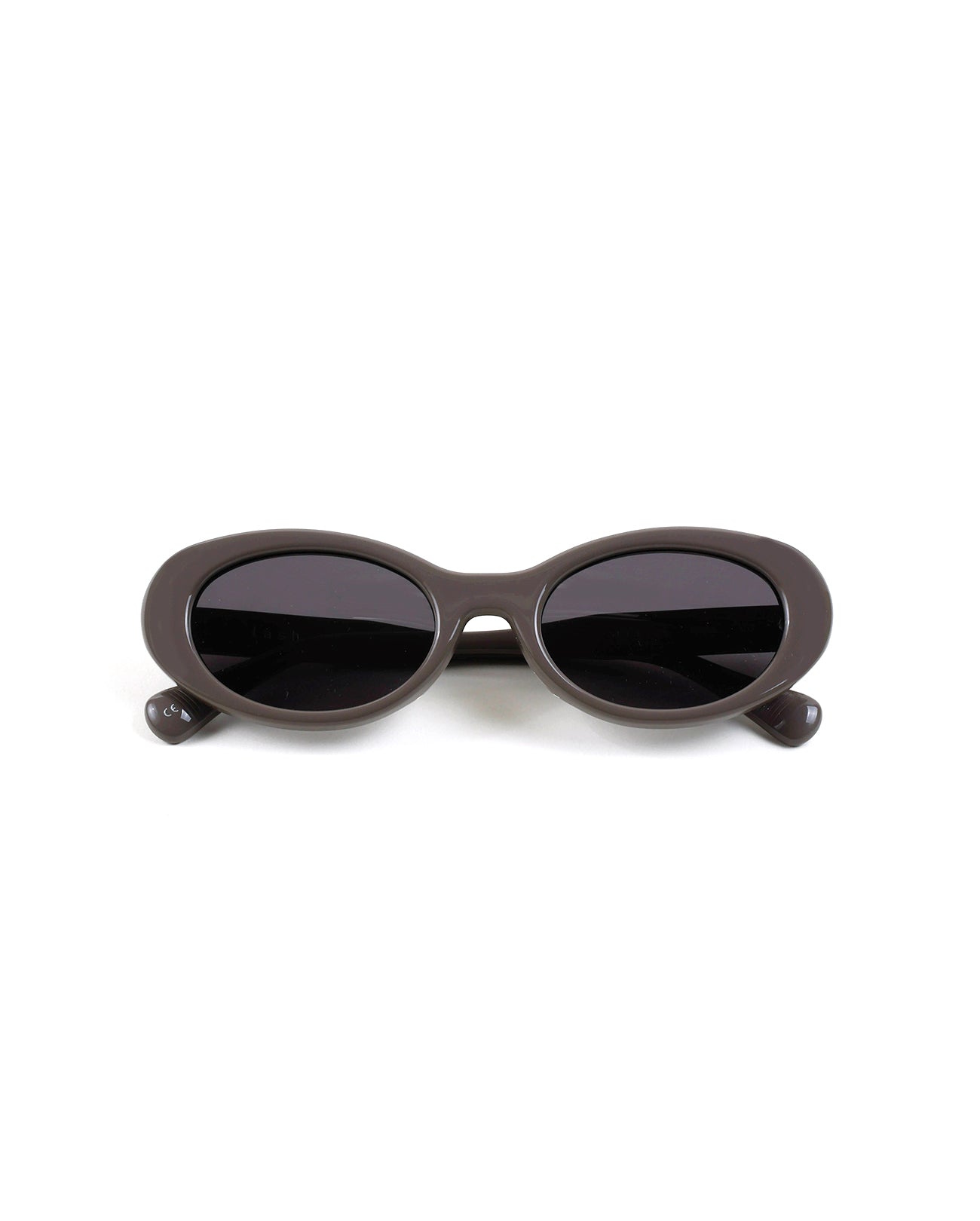 Full acetate sunglasses with a round shape base. The oval-shaped lenses and gently curved sides create a trendy style. They are embellished with metal hardware joined at the temples.