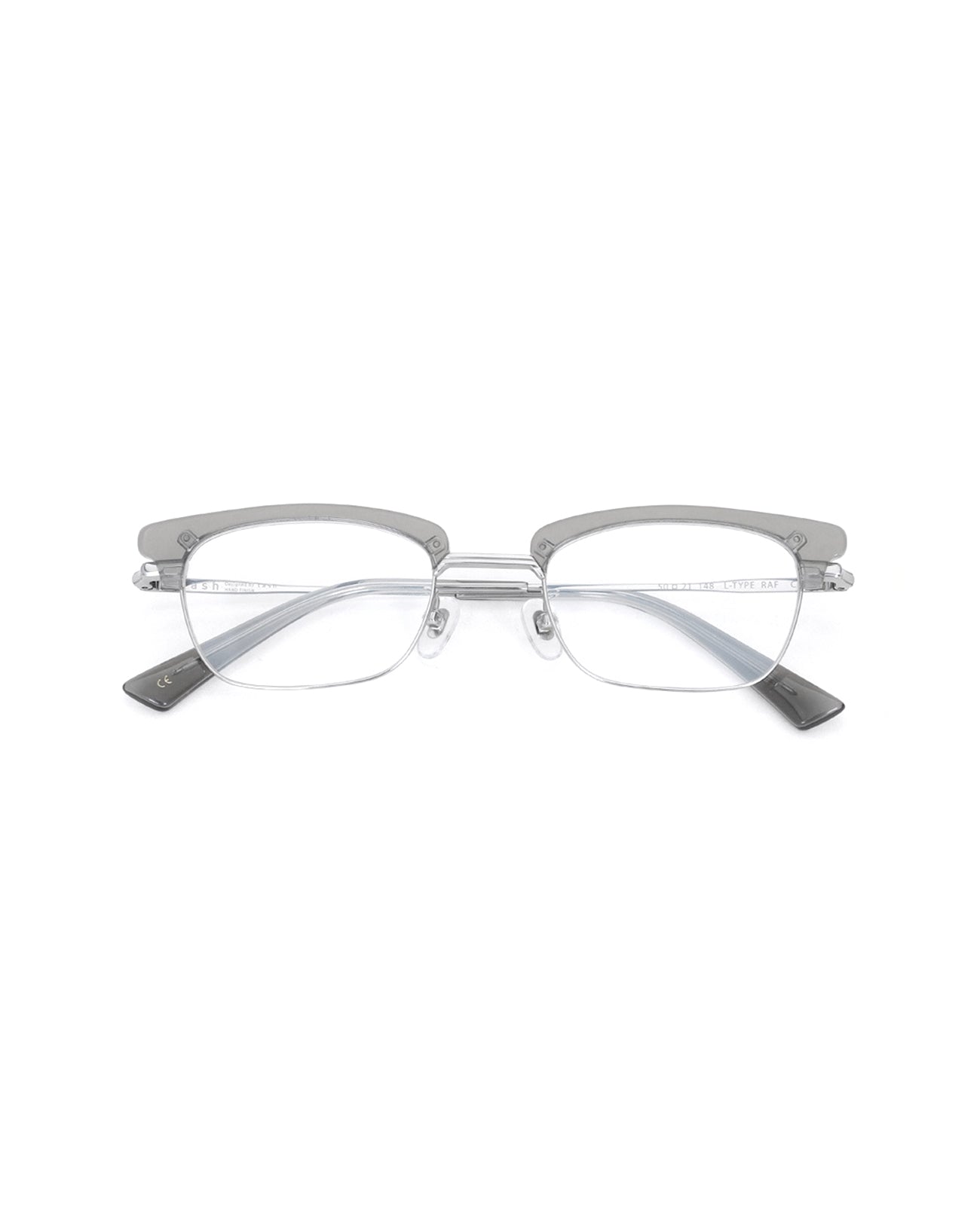 The end piece design combined with the lower part differentiates it from the other brow line rim structure. The overall design shows a strong and sophisticated silhouette.