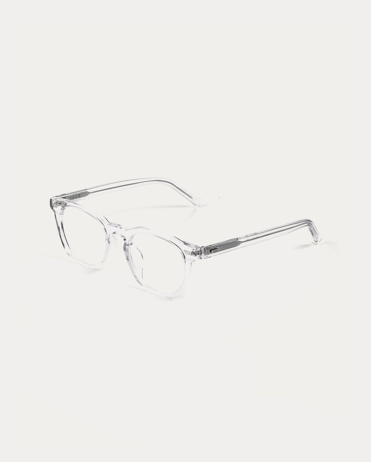 Square acetate optical frame. The length of the endpieces allows for maximizing front size. Faceted details on both ends of the temples create a balanced look.
