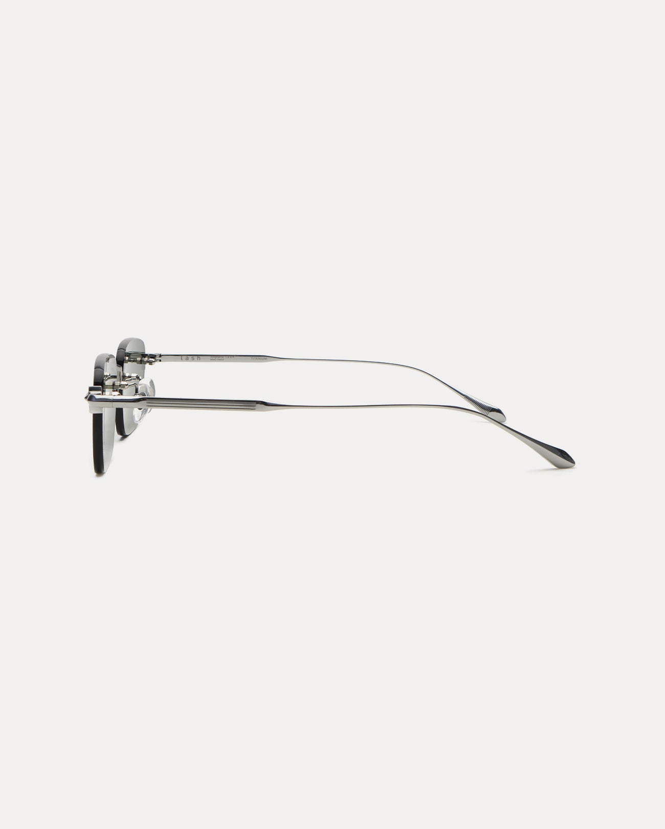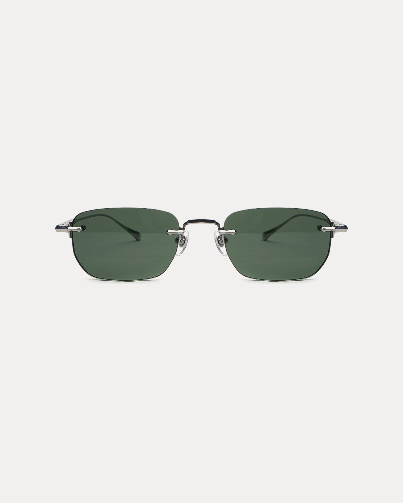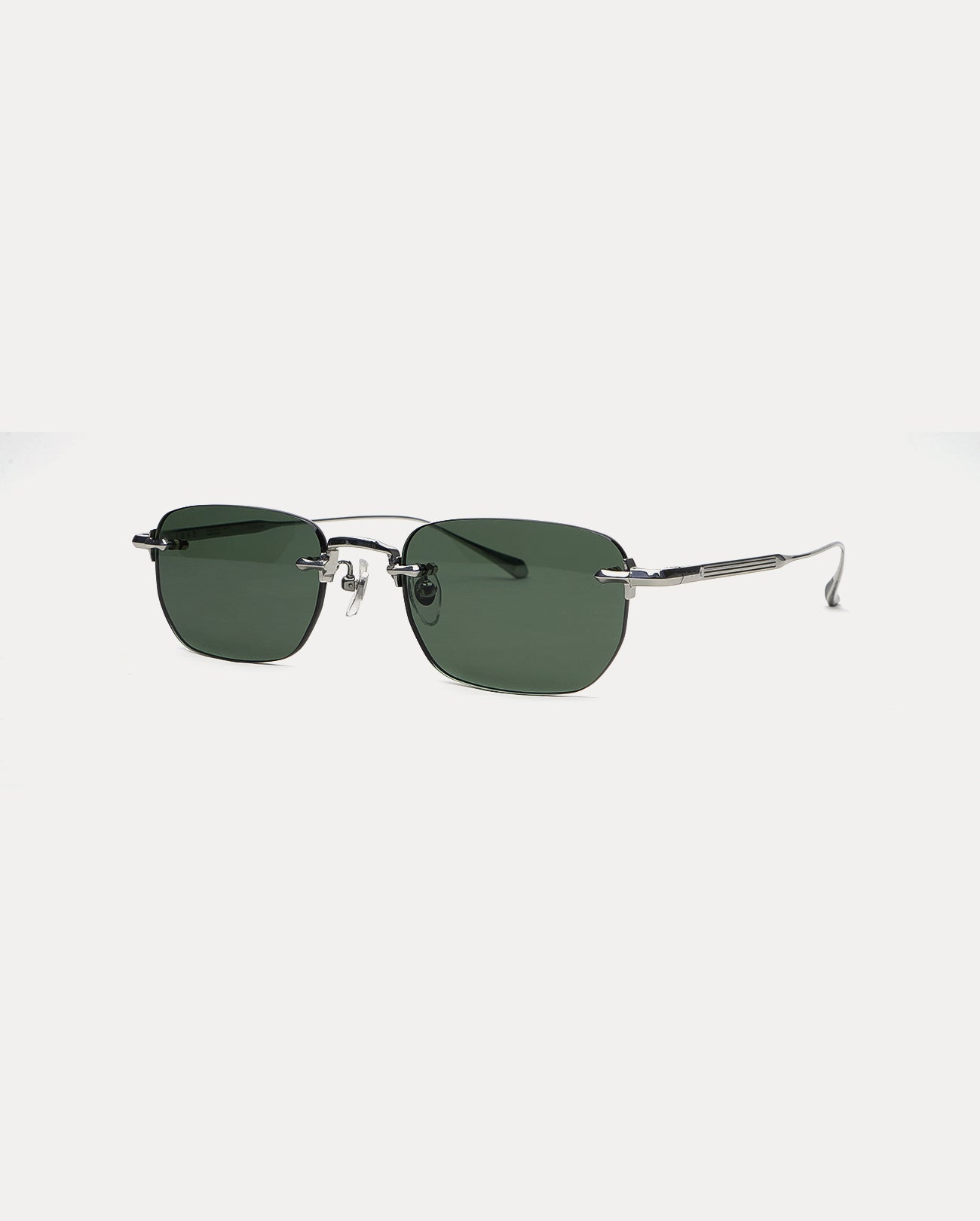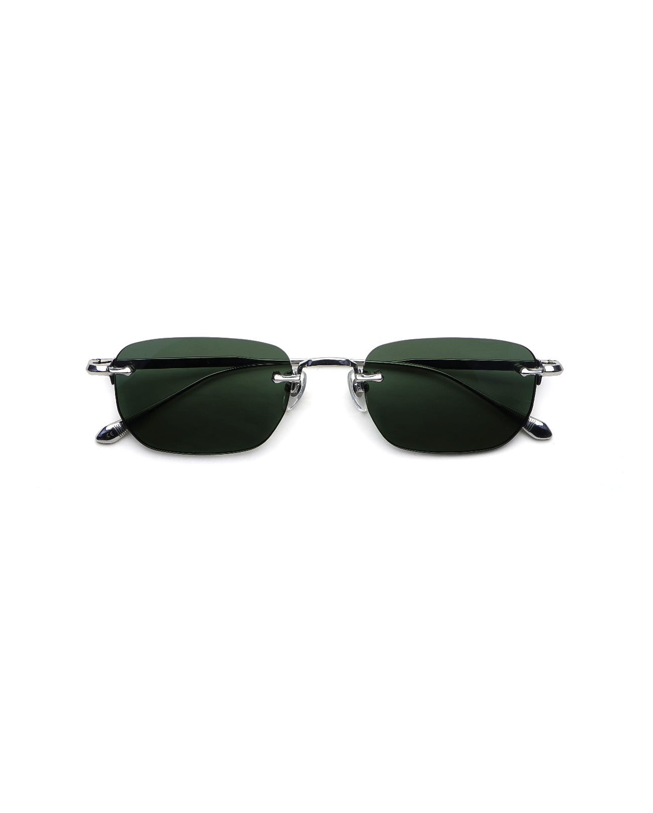 This is a square-shaped rimless sunglasses crafted from beta titanium metal.